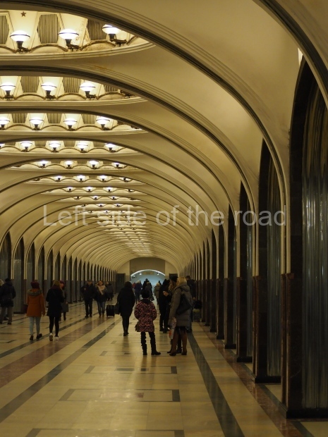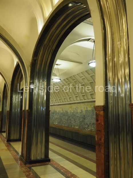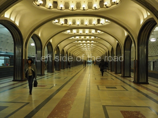 The name as well as the design is a reference to Futurism and its prominent Russian exponent Vladimir Mayakovsky. Considered to be one of the most beautiful in the system, it is a fine example of pre-World War II Stalinist Architecture and one of the most famous Metro stations in the world. It is best known for its 34 ceiling mosaics depicting ’24 Hours in the Land of the Soviets’. During World War II, it was used as a command post for Moscow’s anti-aircraft regiment.