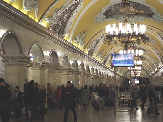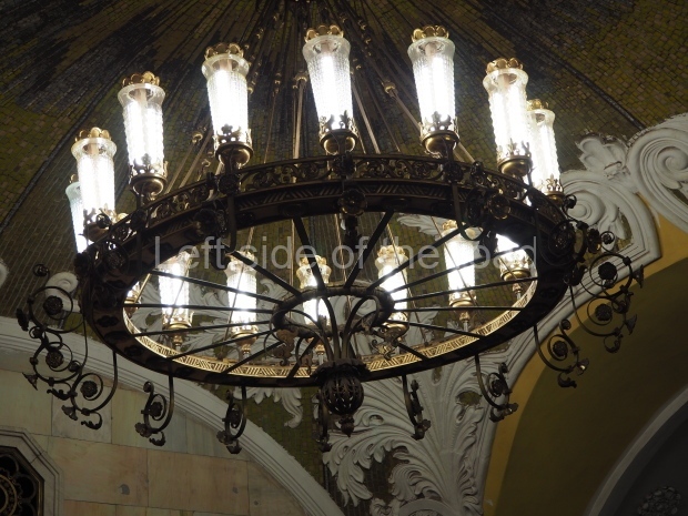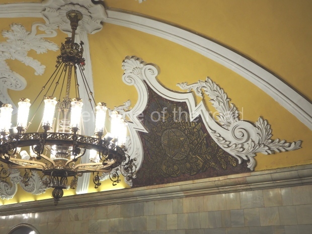 There is an urban legend that the station’s ornate benches were made of Carrara marble taken from the Cathedral of Christ the Saviour just before it was demolished (in 1931), but it is not true, and the marble was from Ural, not Italy.
