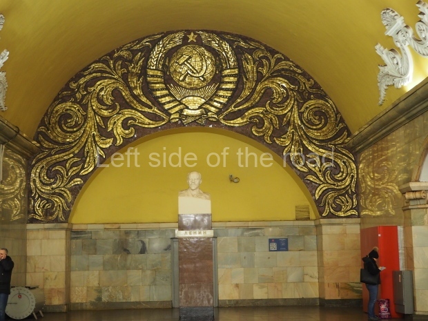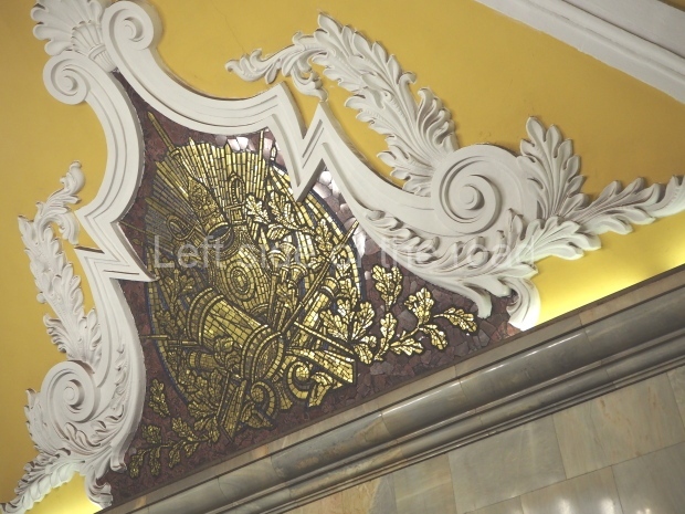 The station honours the Soviet fighting men with its heavy ornamentation. The architects, I. Taranov and N. Bykova, won a USSR State Prize for their design.