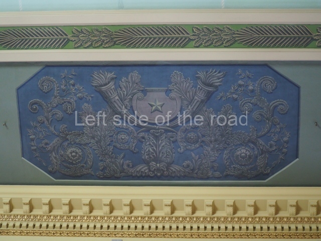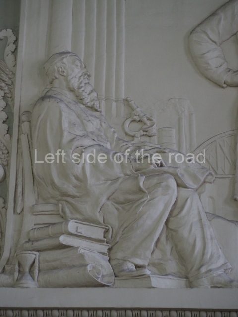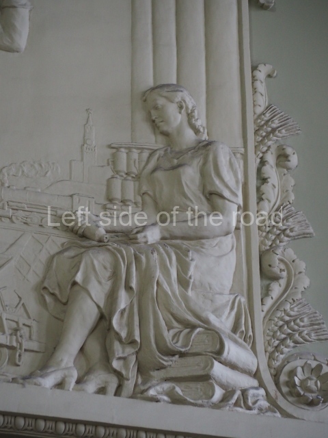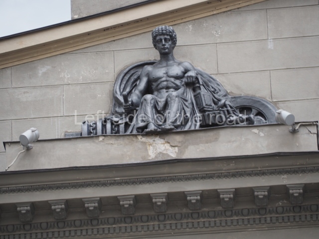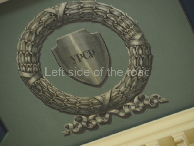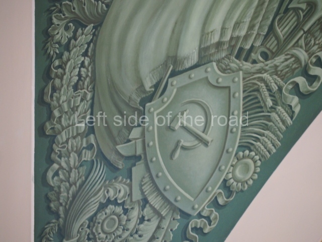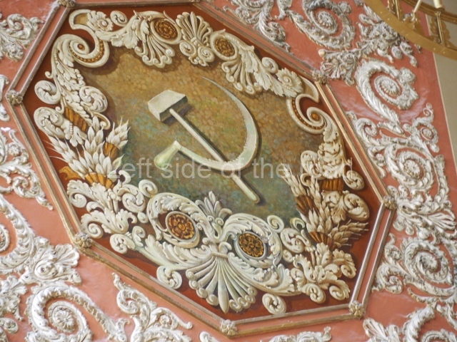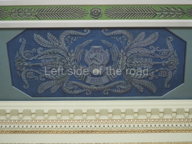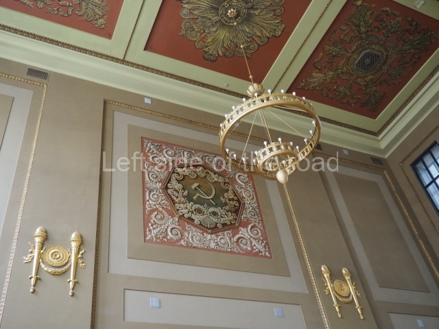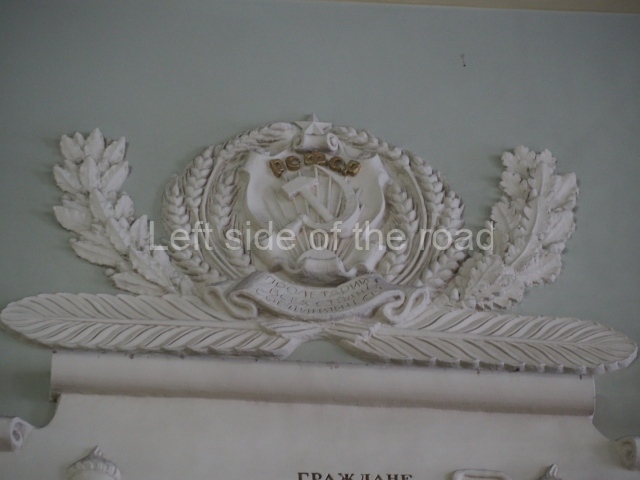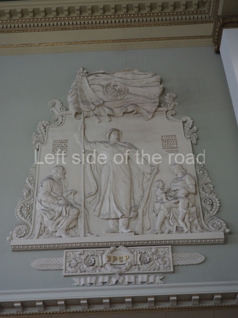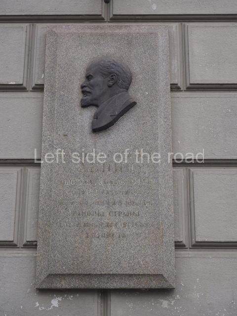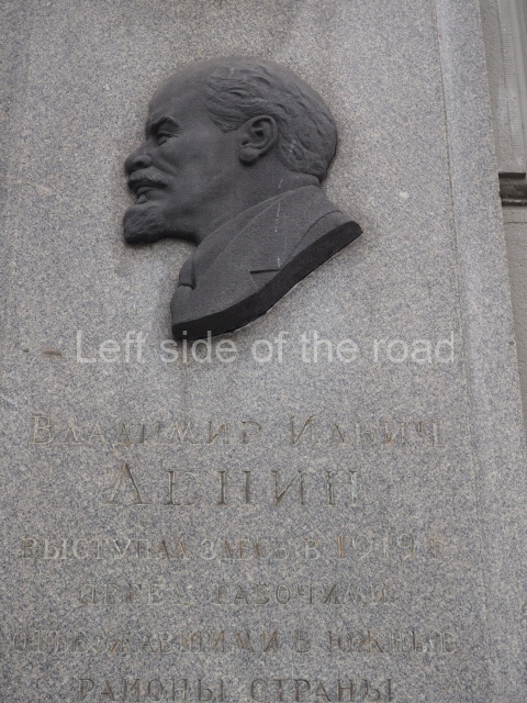 Also, on the left hand side of what is now the main entrance to the building is a large grey marble plaque to VI Lenin.