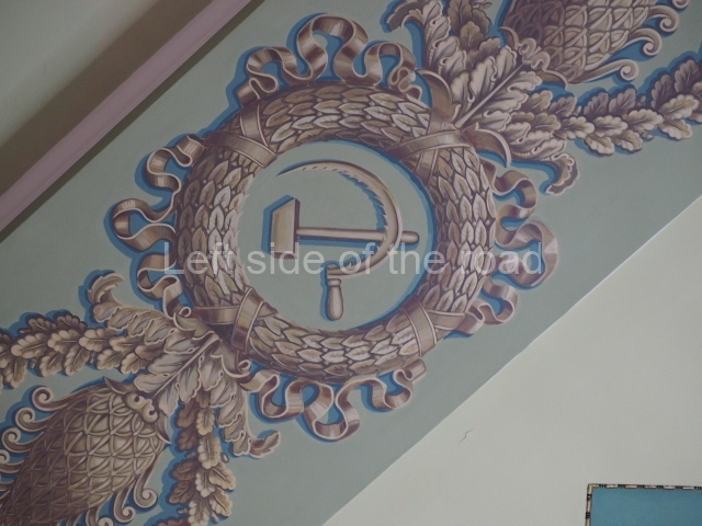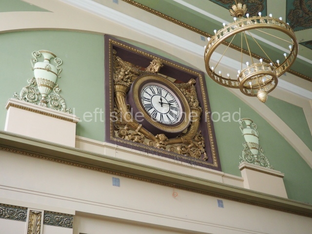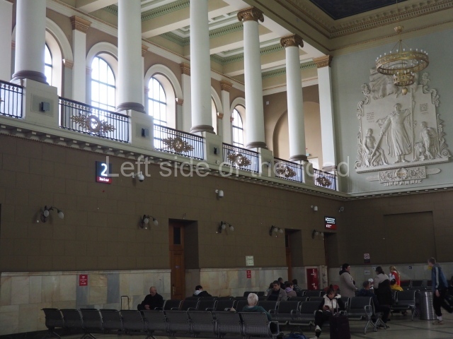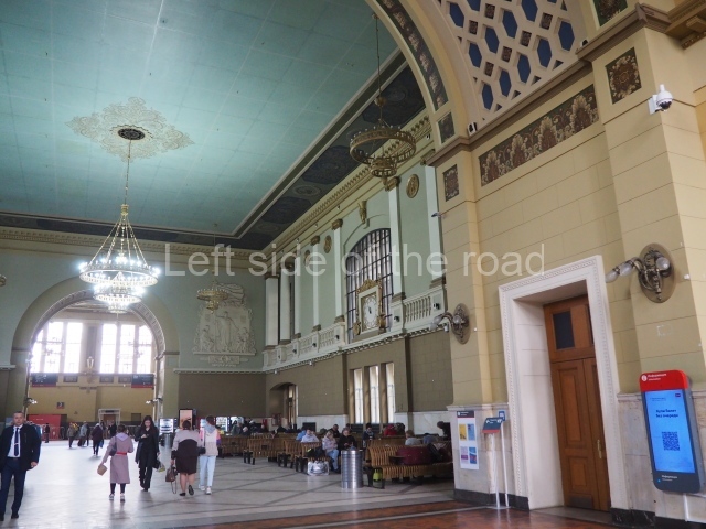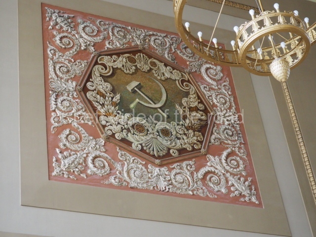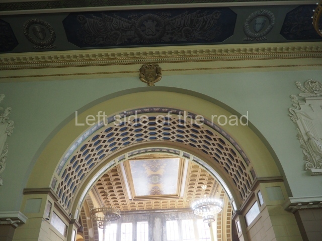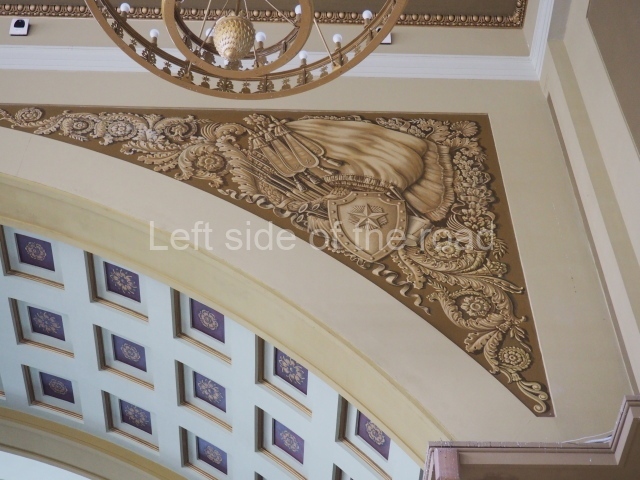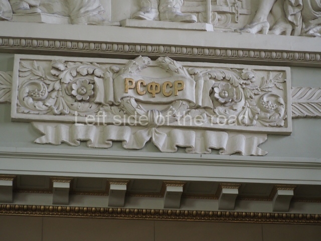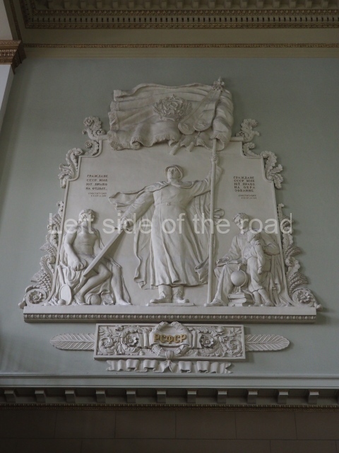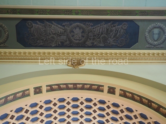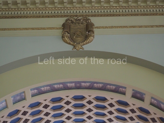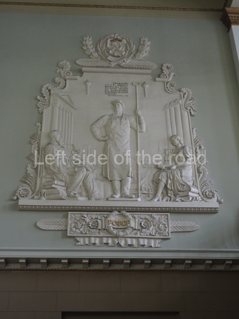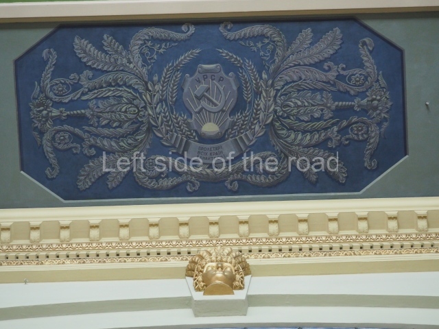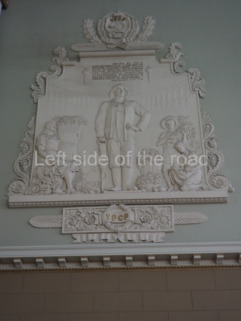 The decoration of the building, both inside and outside, seems to be very much as it was designed at the beginning of the 20th century. Soviet imagery just appears to have been superimposed on what could be considered tsarist baroque. This is apart from the main waiting room that had four large bas-reliefs added after the Great Patriotic War. In fact, this particular area contains the greatest amount of Soviet emblems, i.e., the hammer and sickle image, stars and also references to the Ukrainian Soviet Republic.