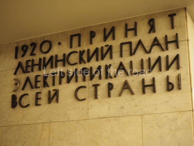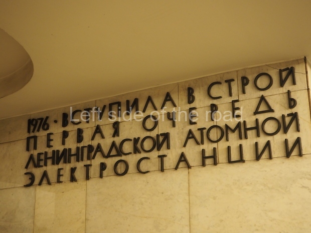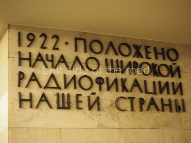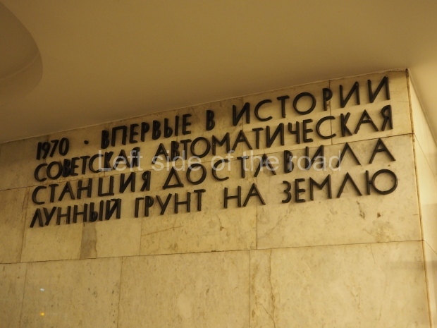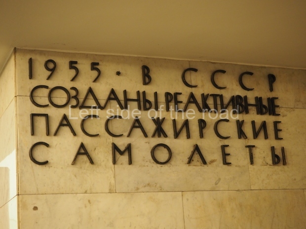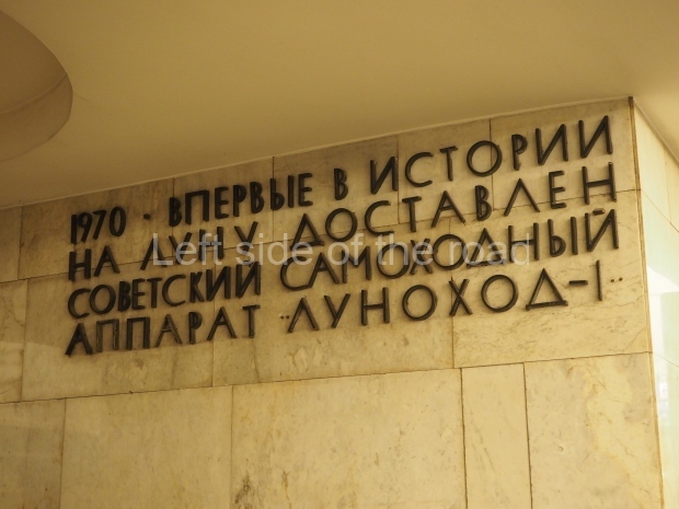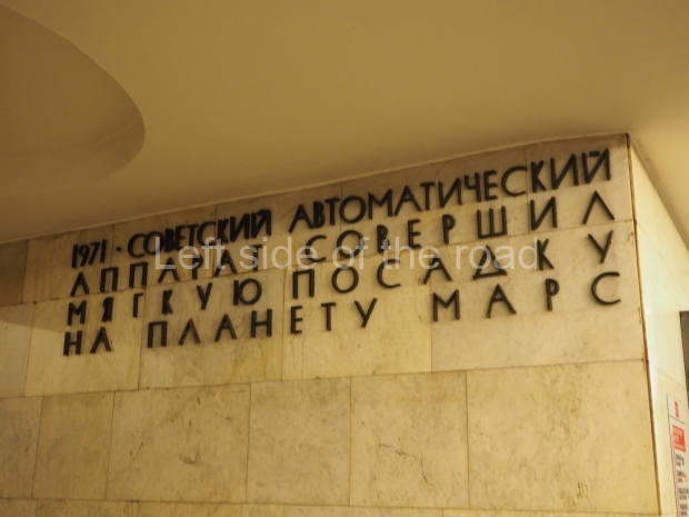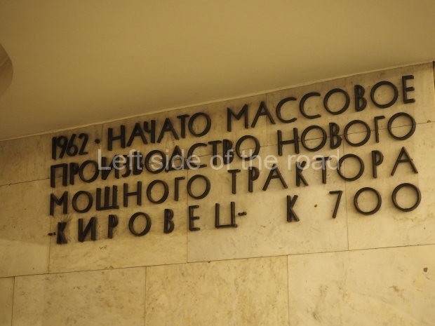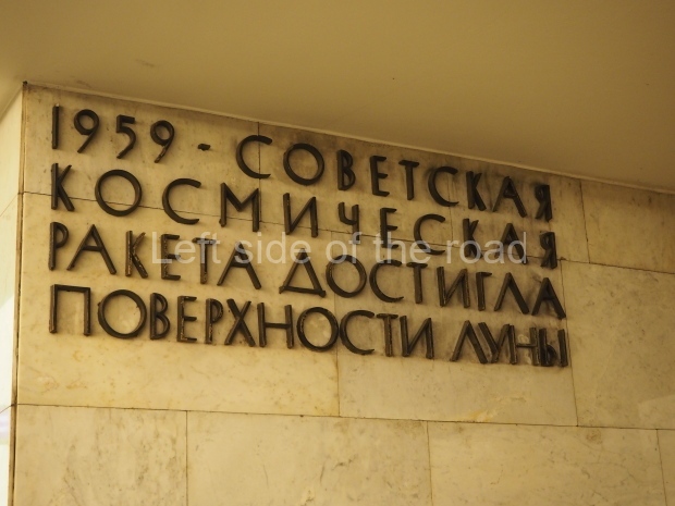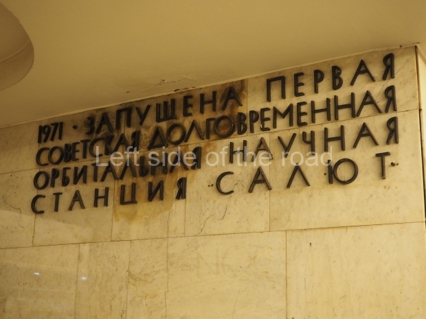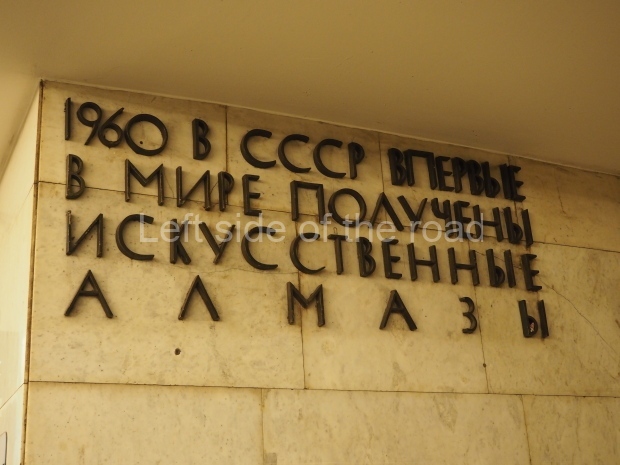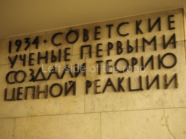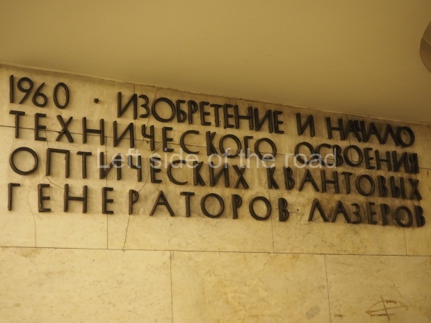 The ‘decoration’ of Tekhnologichesky Institut Line 2 is truly bizarre. This is indicative of the influence of the Revisionists, starting with Khrushchev but going up to 1976 when Brezhnev was leader. Opposed to the beauty of the earlier station the ‘decoration’ of Tekhnologichesky Institut is merely consists of listing the achievements of Russian (not even Soviet) science and technology, together with dates.