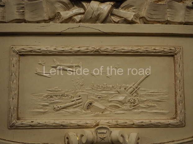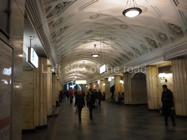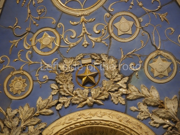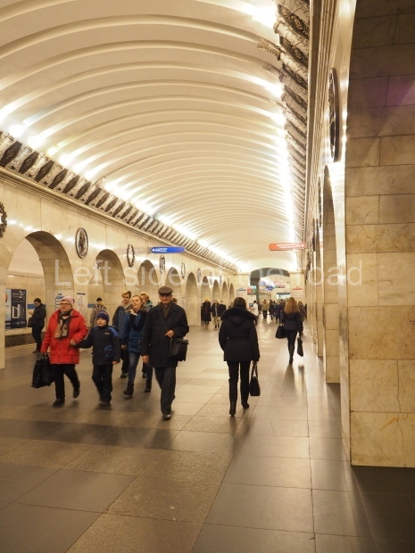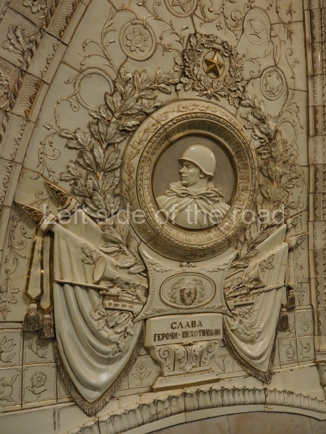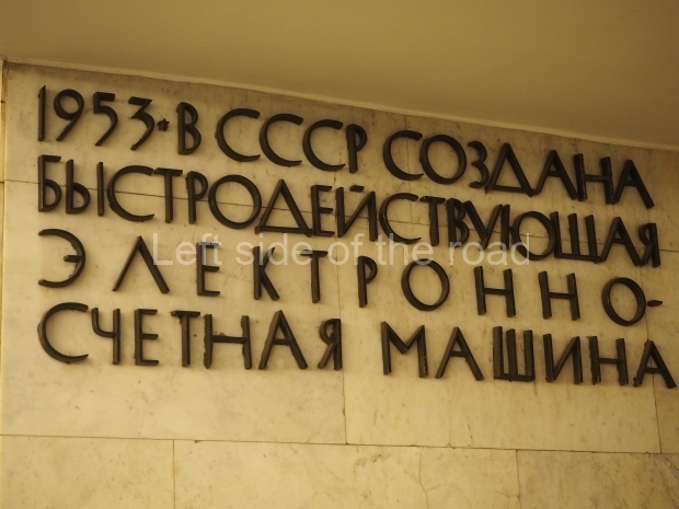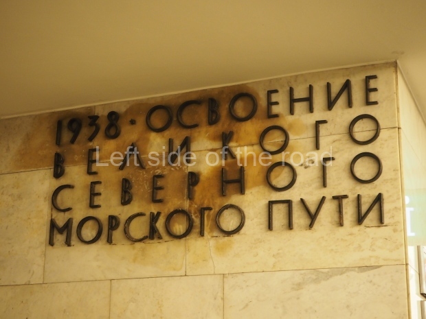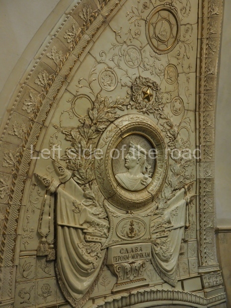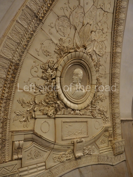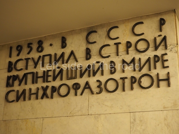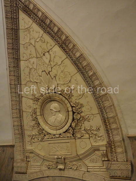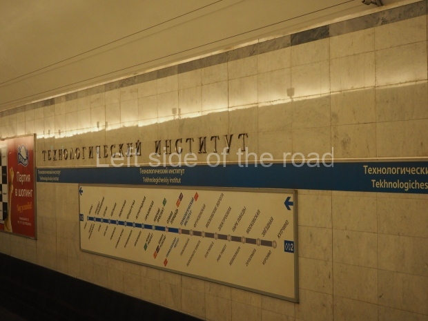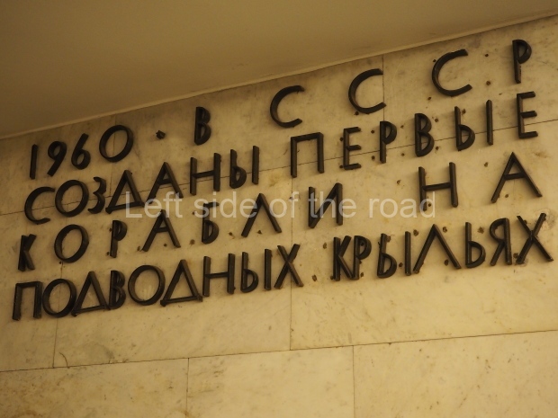 The ‘decoration’ of Tekhnologichesky Institut Line 2 is truly bizarre. This is indicative of the influence of the Revisionists, starting with Khrushchev but going up to 1976 when Brezhnev was leader. Opposed to the beauty of the earlier station the ‘decoration’ of Tekhnologichesky Institut is merely consists of listing the achievements of Russian (not even Soviet) science and technology, together with dates.