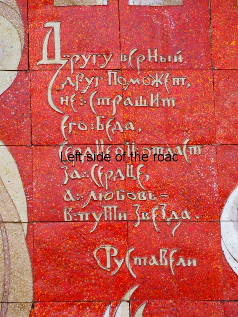 The Soviet section, on the right as you look at the monument, is much easier to understand in its historical context (e.g., The October Revolution and the Great Patriotic War) than the images on the left about Georgia – unless you have an idea of more ancient Georgian history.