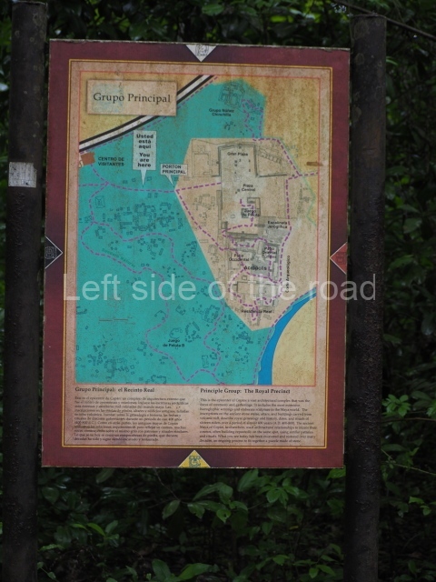 Situated at the entrance to the site is the Copan Sculpture Museum. On the left-hand side, near the ticket office, is a model of the core area of the site. A long path leads to the Great Plaza. This and the Acropolis are the areas open to the public.