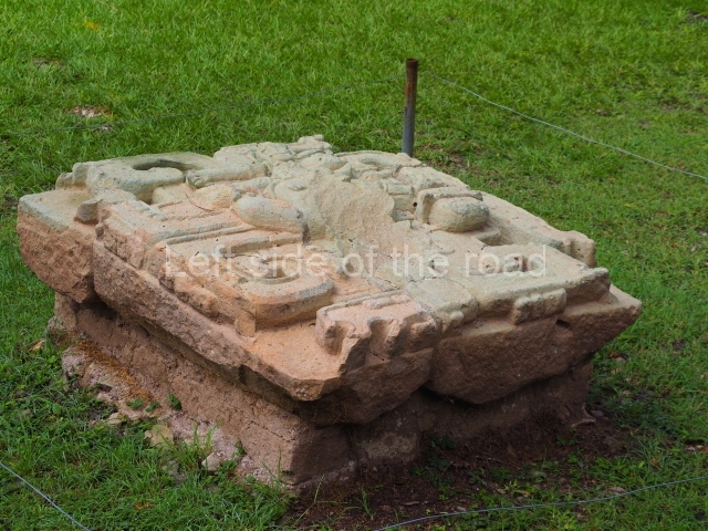 This is situated in one of the typical local houses. The collection contains fascinating ceramics, including the 12 lids found in the Chorcha Tomb beneath the Hieroglyphic Staircase. The lids bear sculptures of the first 12 dynastic rulers. Also on display are stelae 11 and 35, the only surviving fragment of Stela 24, various ball court markers, altars T and U that were found in Copan Ruinas itself, and an unusual sculpture of the Maize God. There are also offerings from the Chorcha and Chamana tombs, as well as numerous explanatory panels that provide information not only about the site but Maya culture in general.