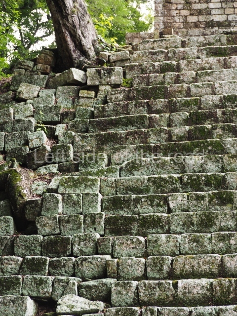 This extraordinary space with a stairway around most of its perimeter comprises the Sun or Stelae Court to the north, the Hieroglyphic Stairway Plaza to the south, the East Court and the Ball Court. The Sun Court takes its name from the solar phenomena – equinoxes, solstices and the passage of the sun over the zenith – which are marked by several of the seven stelae, 11 altars and Structure 4 situated there. The latter is a small square-plan, radial pyramid with free-standing stairways on every side, formed by four vertical tiers. Two groups of sculptures can be found in the Sun Court, one in the middle comprising stelae I, A, 4, B, C, E, D, F and H, with their corresponding altars and the independent Altar G; Stela 3 was erected on the south side of Structure 4. The tour of this area continues to a platform on the north-east side of the Sun Court, with Structure 3 at the east end and series of structures on the north side. The most outstanding of these are the steam baths with their unmistakeable engineering. Meanwhile, the East Court or Middle Plaza is virtually devoid of elements, which means that it is difficult to infer its function. At the north-east end stands the unusual Stela J, whose altar marks the boundary of the central court.