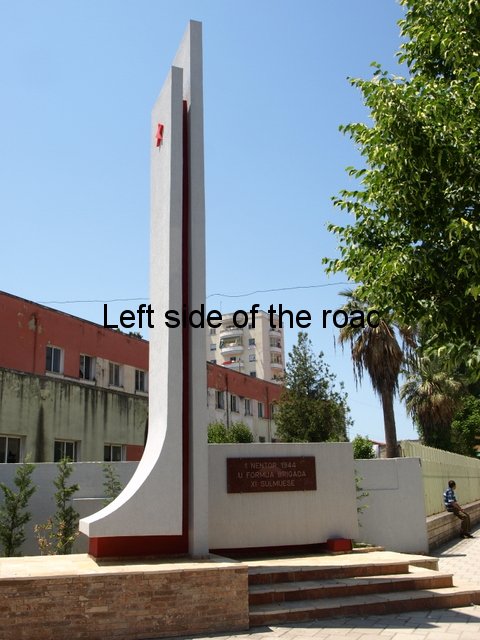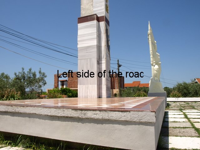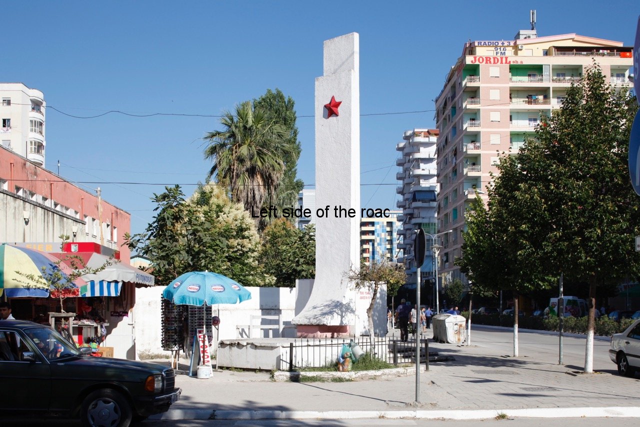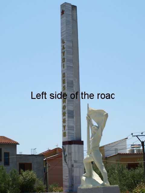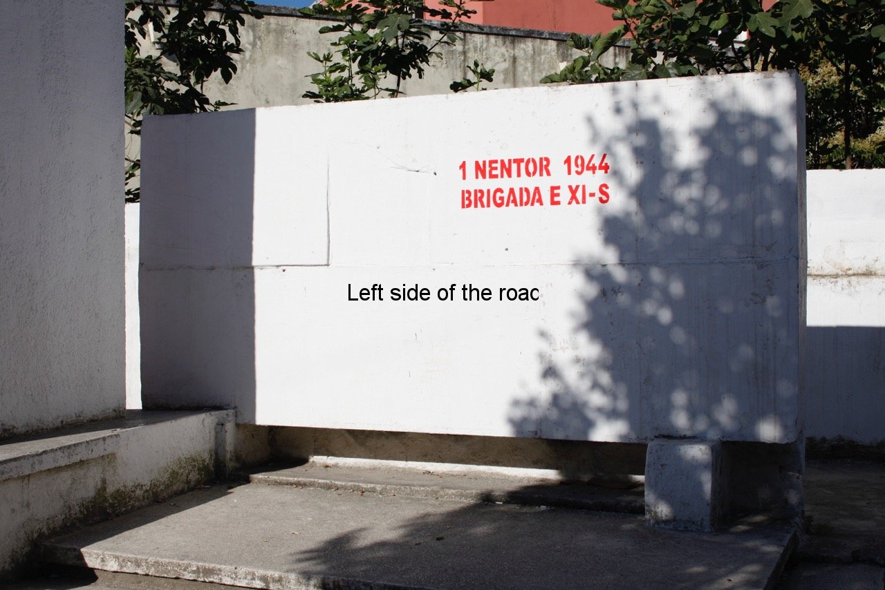 On the right hand side of the road, about 200m from Sheshi Europa Plaza (on the Fier ring-road) on the SH73 – the road to Berat – is a modest monument to three young men killed in the fight to liberate the city from the German Nazis. This is more typical of the lapidars around the country than those I have documented so far and if you didn’t know it was there it would be very easy to miss. Unlike War Memorials in the UK it is not common for there to be some sort of railing around the monument, not now nor in the past.