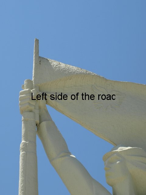 Her limbs almost form an X, the right arm and left leg in a straight line, the other two limbs not doing so as her right leg is higher up the hill she is climbing. This gives the figure a sense of dynamism. She is moving forward as well as going up, going higher. Stretching she is pushing herself to achieve more. As a Partisan this is first and foremost victory in the National Liberation War against Fascism but in that war Communists were fighting to rid their country of the invaders but also in order to build a new society. And once the revolution is won it’s not possible to rest on your laurels. It’s difficult to make a revolution but it’s even more difficult to build a new sort of society – which will be constantly under attack from the capitalists, both in the country and from without, and more the powerful imperialist nations. So the task of a Partisan changes after liberation but it doesn’t get any easier – hence the title of the statue.