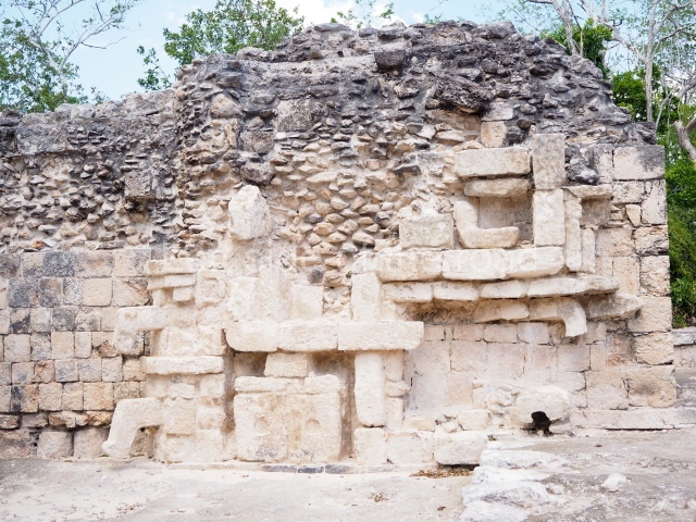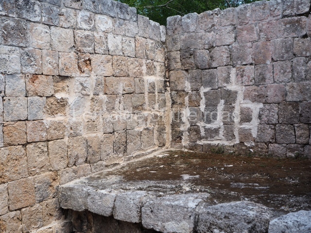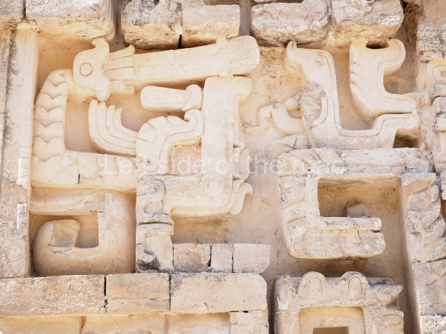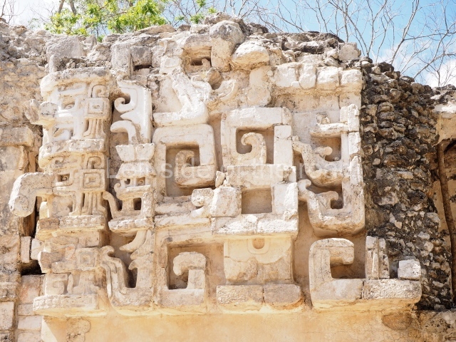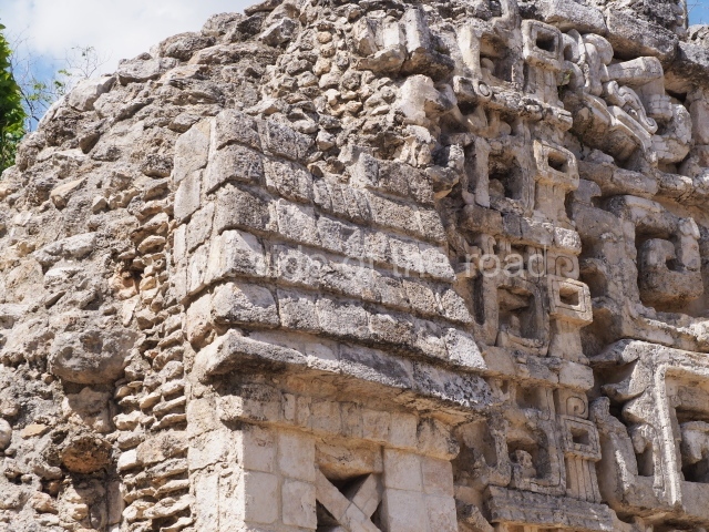 Another notable feature of this site is the hieroglyphic altar in the west plaza of the Codz Pop, which constitutes one of the longest inscriptions in the northern lowlands and whose blocks, currently in disarray, await decipherment to shed further light on the rulers and the history of the site and region. Finally, mention must be made of the chultunes, one in the Palace plaza and the other opposite the mask facade of the Codz Pop; the latter is one of the largest in the Puuc region and to this day it guarantees the supply of water to the site. Situated south of the Codz Pop there is also an aguada or natural depression.