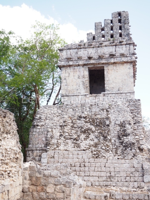 The building measures 54 m on its west facade, 24.5 m in depth and 46 m on its east side. The west wing is composed of two longitudinal bays, each of which contains five rooms. The east wing has just one bay and contains nine rooms; in the north and south wings there are an additional four chambers distributed between three simple bays on each side. The access is either via the south-west corner of the group, which during the latter days of the city’s occupation was sealed by another structure, or via the Teocalli stairways.