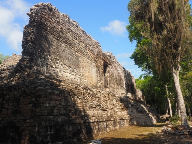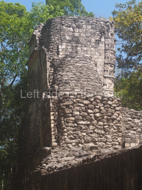 Situated in the south-east section of the plaza, this comprises a small pyramid platform, some 5 m in height, with two rooms at the top; each has its own stairway and separate entrance, to the north and south. The stairways once had balustrades or veneer stones along the sides. The exterior east and west walls display ‘false’ or simulated entrances. At the top of the structure are the remains of a roof comb with ‘souls’ or projecting stone tenons that provided a base for stucco motifs.
