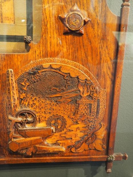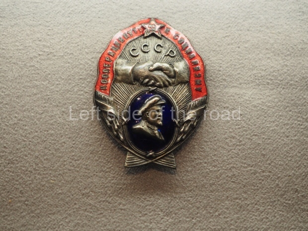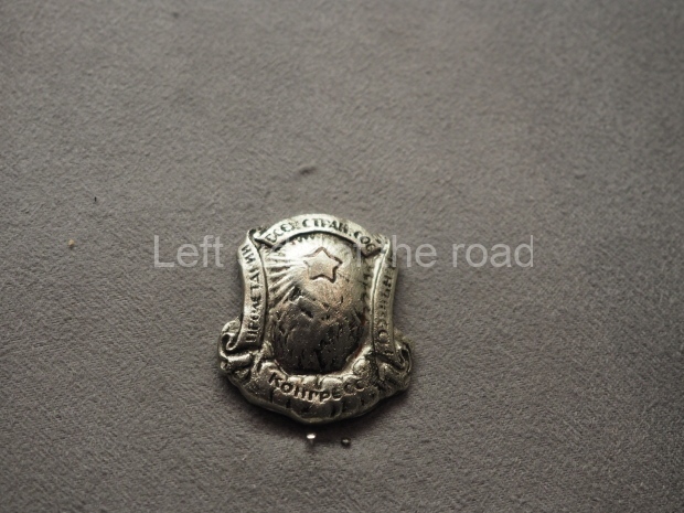 - an example of a small badge with an image of the Hammer and Plough. I assume this was what was considered before the Hammer and Sickle was adopted (but, so far, I haven’t been able to find out anything more about how the now famous symbol of the Soviet Union was eventually accepted as being representative of the country’s construction of Socialism.)