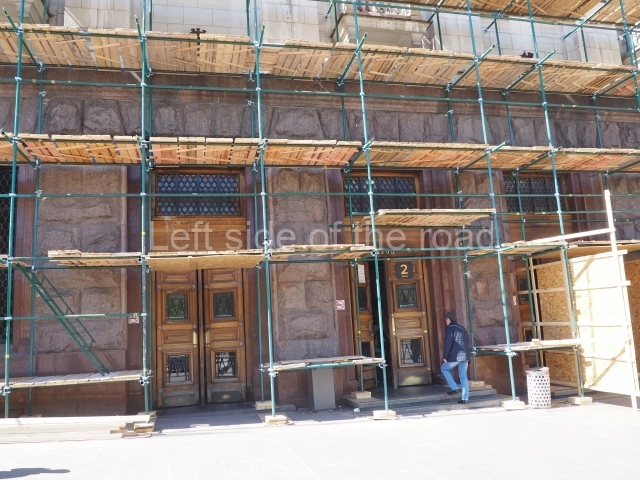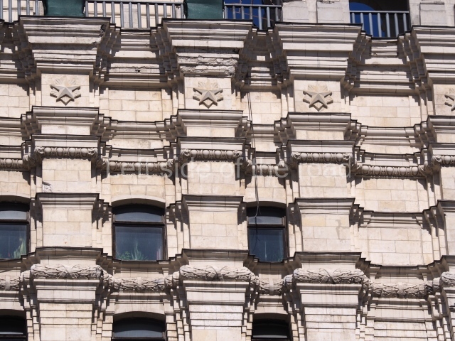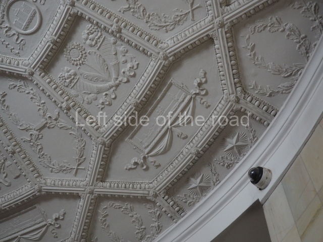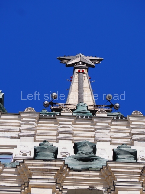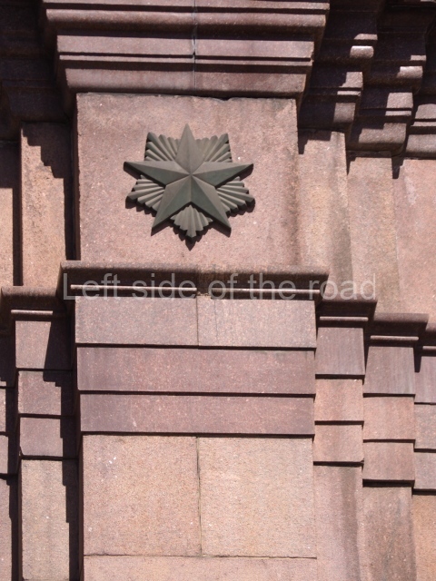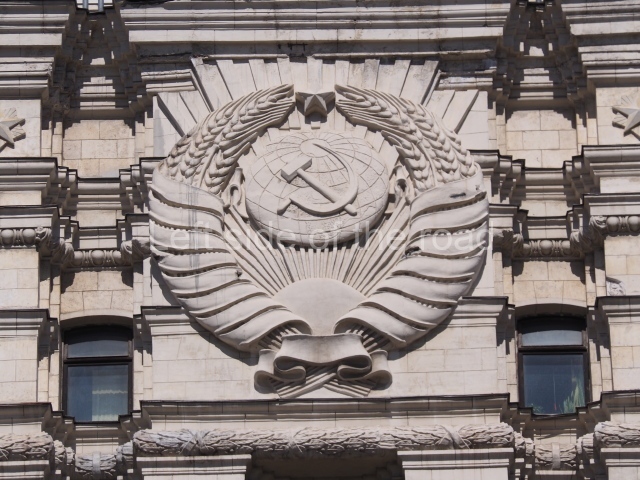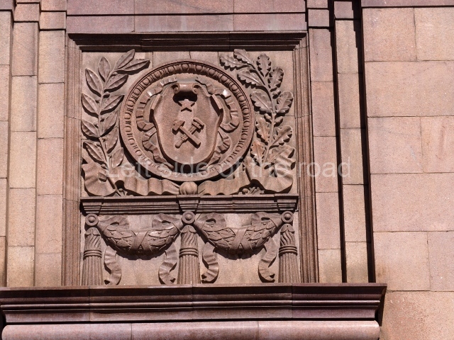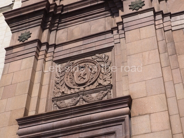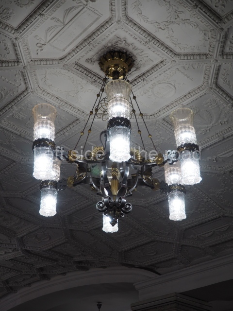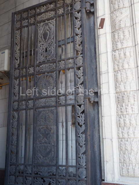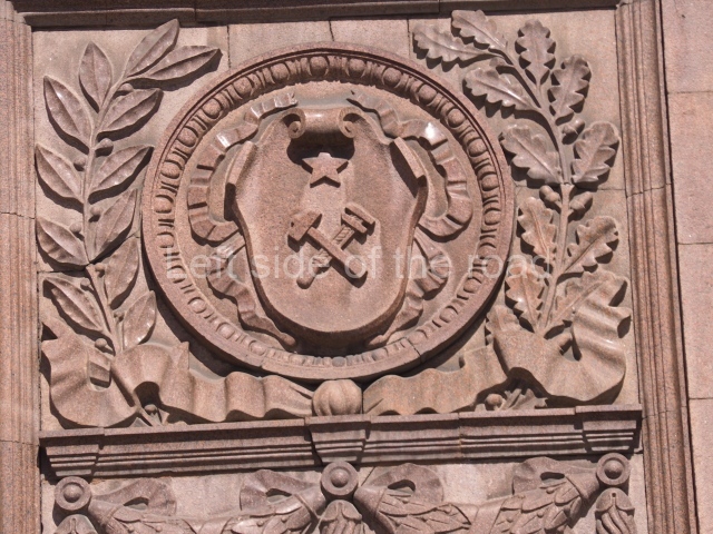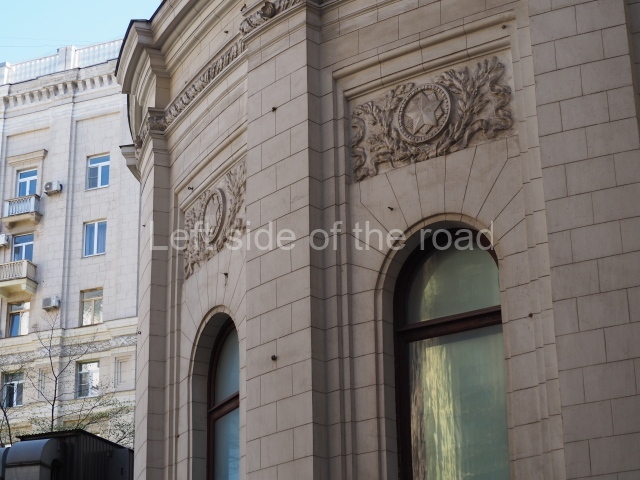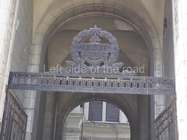 Architects Ivan Fomin and N. Andrikanis [although I’ve seen elsewhere that the architect was Nikolai Ladovsky – this will be updated if definitive information becomes available] designed the station. It was one of Moscow’s first four deep-level stations, and one of the first two to employ a three-arched design with three parallel, circular tunnels. In this type of station, the outer tubes (which house the tracks and platforms) are separated from the larger central hall by heavy pylons. This design was planned to be used for the first time on the four central-city stations on the first Metro line, Krasnye Vorota, Chistye Prudy, Lubyanka, and Okhotnyi Ryad. However, due to construction difficulties a simpler two-arched design was implemented at Lubyanka and Chistye Prudy.