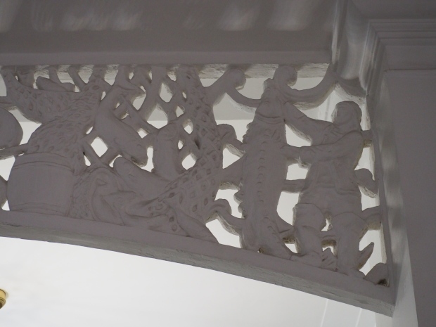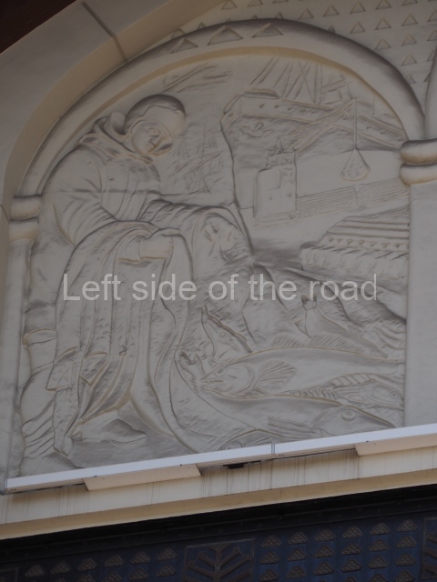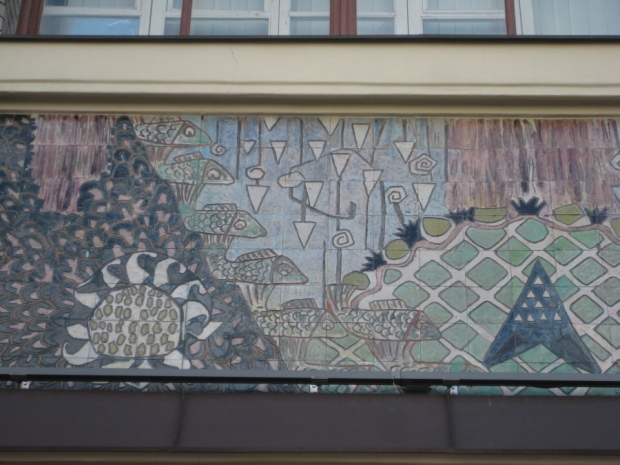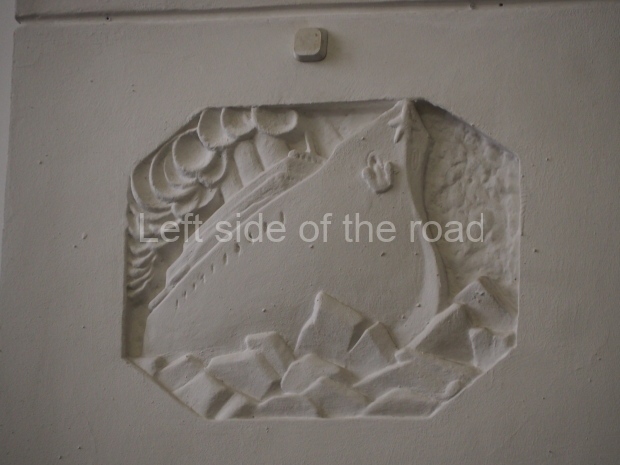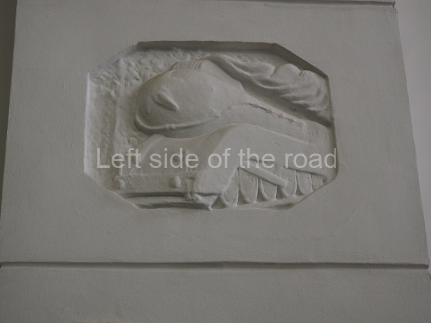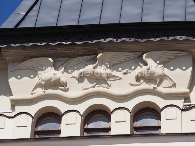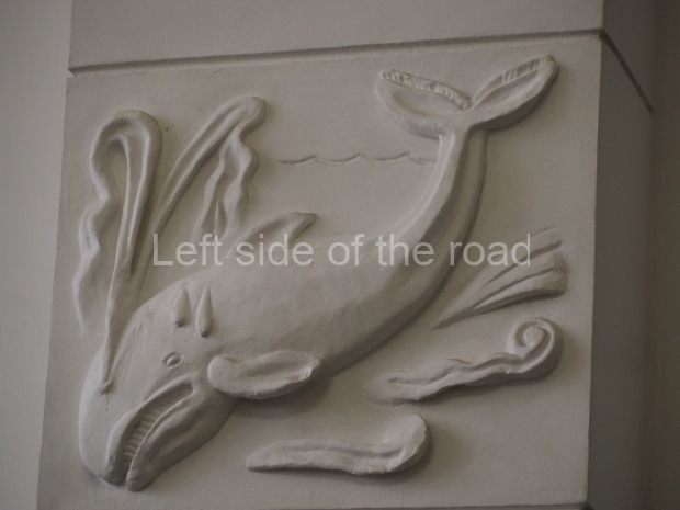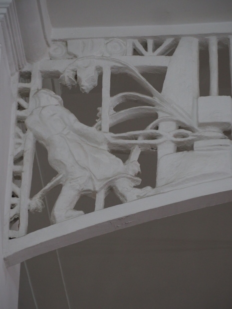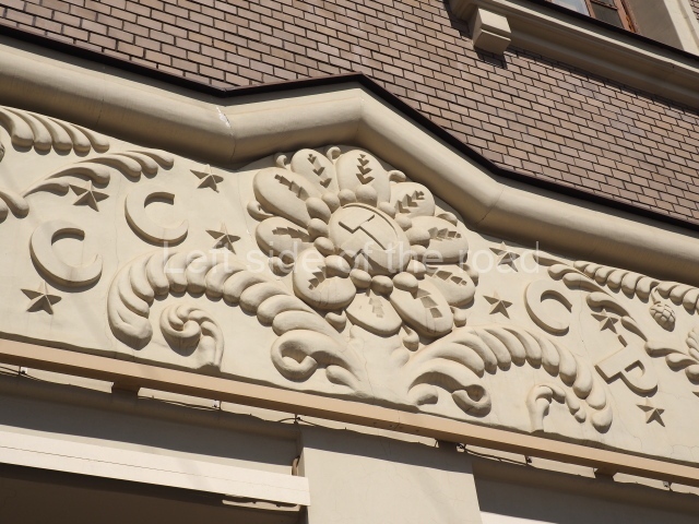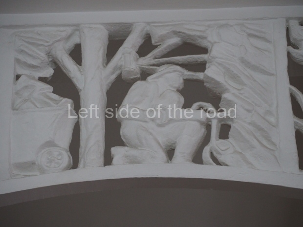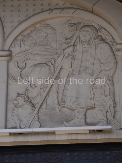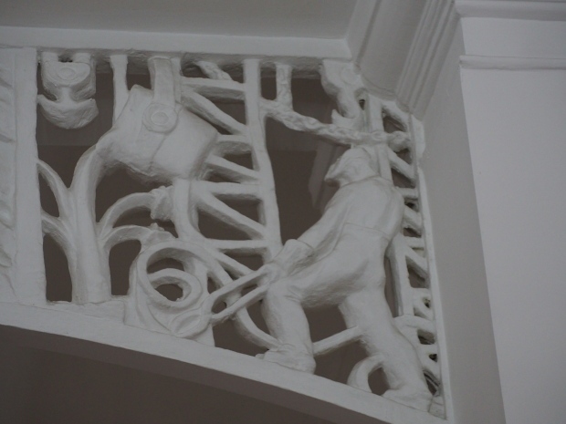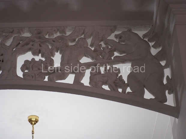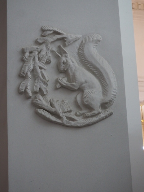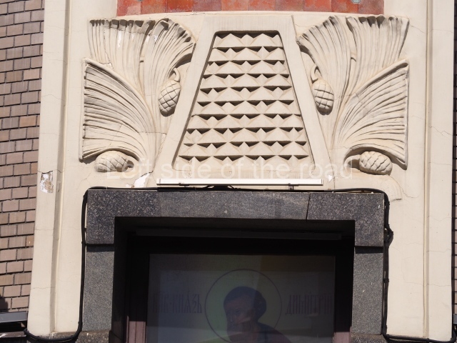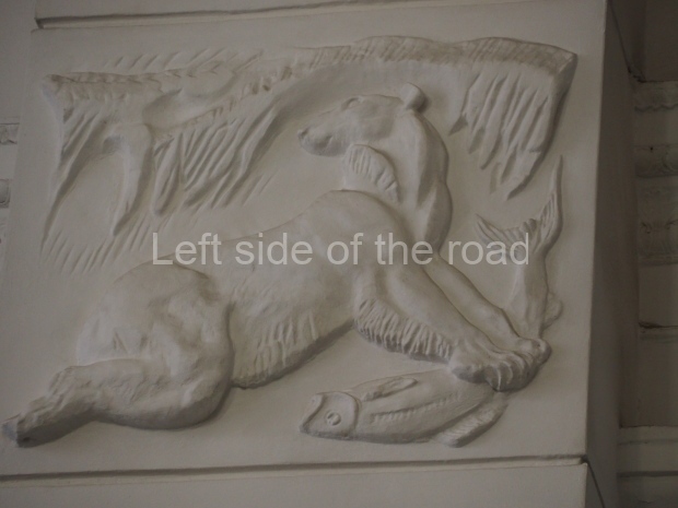 However the decoration evolved it is clear that there was a respect for the original images, even though they might have been considered as ‘bourgeois art’. The various mosaics/tiles on the exterior seem to have been kept as they would have been in 1910 and they, and the bas reliefs of animals and representations of nature from the Yaroslavl countryside, are all in very good condition. In fact all the decoration on the outside of the building is in a very good condition.