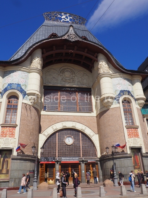 The Yaroslavsky mainline railway station in Moscow is not only the busiest of the capital’s rail hubs it is also one of the most interesting architecturally. The present building was built to replace the original 19th century station in the first decade of the 20th, therefore before the October Revolution of 1917 and the influences of the new socialist society upon architecture and decoration.