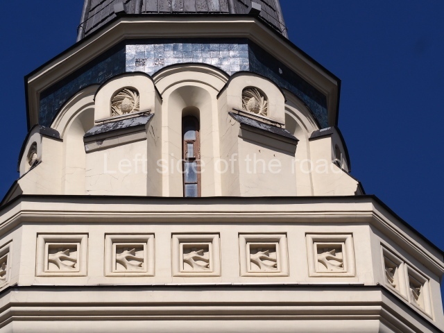 And at the very summit of the broach spire, to the left of the main entrance when looking from the street, there would have been a Christian cross which was later replaced by a star, another symbol of the Soviet state.