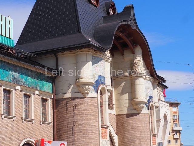 The station is an example of Russian Art Nouveau (which, until recently, I didn’t even know existed). When compared with buildings constructed in other European countries at the same period, i.e., the end of the 19th and beginning of the 20th centuries, it is possible to see the connections. Each ‘national’ art nouveau shared certain conceptions (mainly the connection to nature) but with specific aspects which were derived from the individual national culture and tradition. (To compare with examples of ‘modernismo’ in Catalunya follow some of the links on the Catalunya/Catalonia page.)