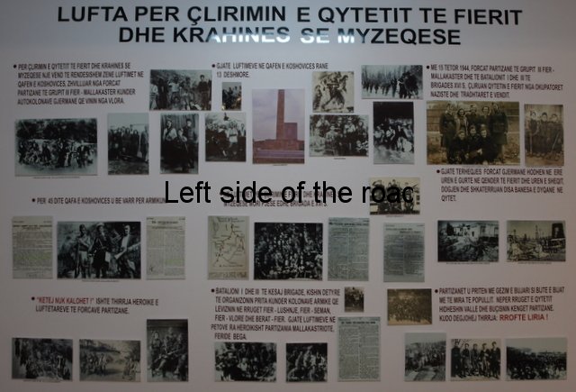 Across the road is a monument to other brave Fier women. Obviously very well organised, in a town that was occupied by the Fascist invaders, on the 14th September 1943, under the cover of darkness, 68 young women and girls left to join the Partisans. Not only was the actual leaving of the town a dangerous activity they then spent the next few days walking all the way to Berat to join up with the increasingly more powerful and organised Communist led National Liberation fighters.