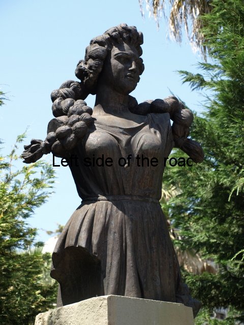 If her clothing is bad things get even worse when we look at her hair. The pictures of Liri show her with long hair, a style that would have been common with girls of her age at that time but here she is represented with hair of which Rapunzel herself would have been jealous. (With the wonders of the internet I’ve just had a look and you can buy Rapunzel wigs that must have been what the sculptor forced his model to wear.)