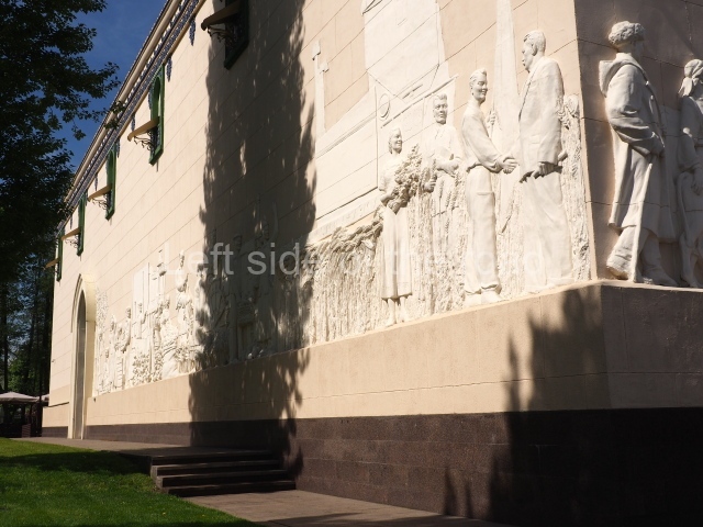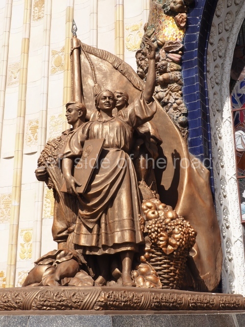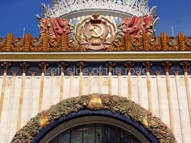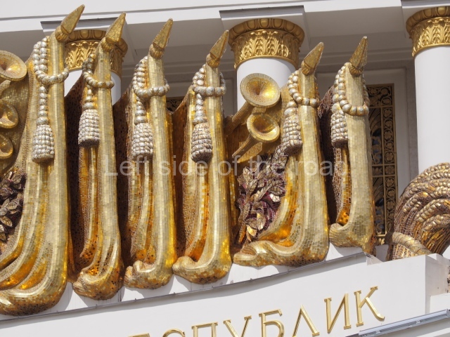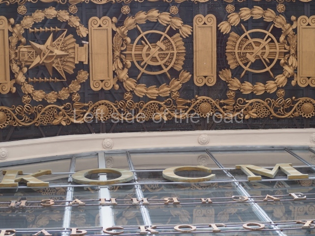 The Ukrainian Republic pavilion is probably bigger, more ornate, more complex in its imagery, having had more attention paid to it, having had more money given to it and stands out amongst many impressive buildings. And this is the case with many other references to the Ukraine in Moscow. Both the two stations on the metro system (Line 3 and Line 5) are amongst the most ornate amongst a collection of very ornate structures. As is the internal decoration of the Kievskaya mainline railway station.