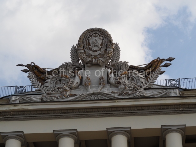 The Worker and Kolkhoz Woman is outside the main park space, to the right as you look at the main site entrance arch, about 10 minutes away. That has been the subject of a separate post so images of that magnificent sculpture, truly accepted to be an iconic representation of the Soviet Union, can be seen by following the link above. It’s very much worth a short diversion to appreciate the sheer scale and beauty of the, now, renovated and restored masterpiece.