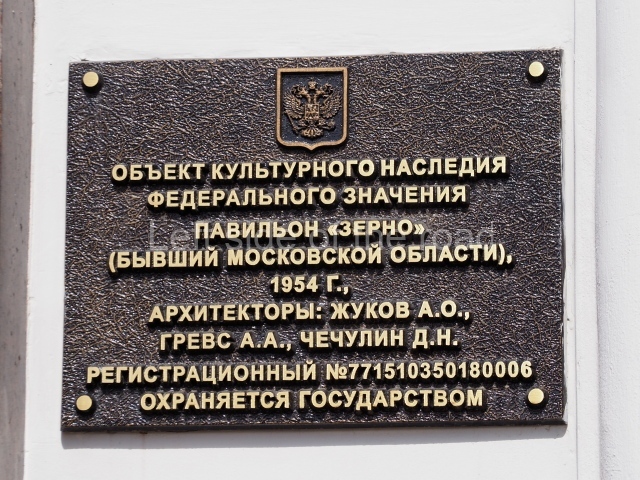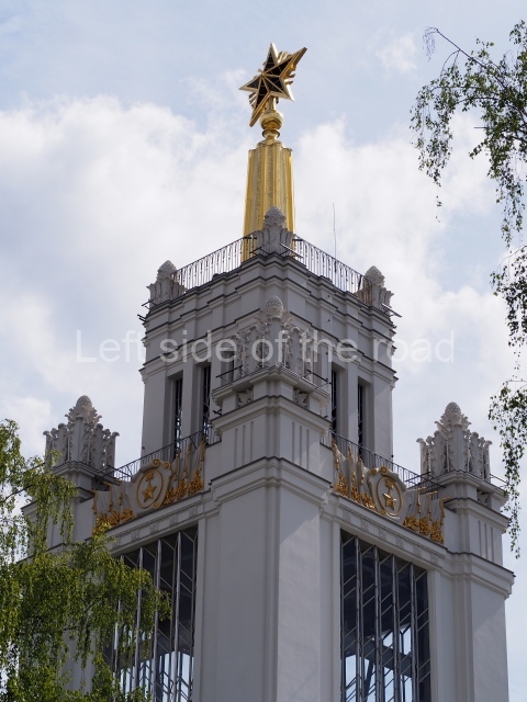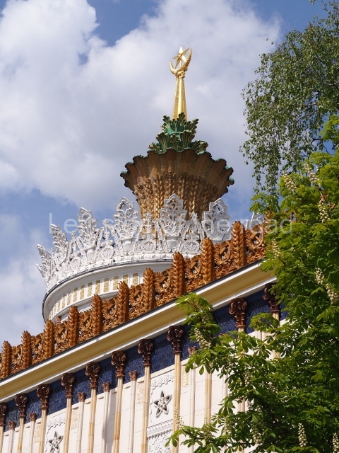 The exhibition was established February 17, 1935 as the All-Union Agricultural Exhibition (VSKhV) (Russian: Всесоюзная сельско-хозяйственная выставка; Vsesoyuznaya selsko-khozyaystvennaya vystavka). An existing site (then known as Ostankino Park, a country territory recently incorporated into the city limits), was approved in August 1935. The master plan by Vyacheslav Oltarzhevsky was approved in April 1936, and the first show season was announced to begin in July 1937 and was designed as a ‘City of Exhibitions’ with streets and public spaces, which was very common in the 1930s. However, plans did not materialise and three weeks before the deadline Joseph Stalin personally postponed the exhibition by one year (to August 1938). It seemed that this time everything would be ready on time, but again the builders failed to complete their work, and regional authorities failed to select and deliver proper exhibits. Some pavilions and the 1937 entrance gates by Oltarzhevsky were torn down to be replaced with more appropriate structures (most pavilions were criticised for having no windows). According to Oltarzhevsky’s original plan, all of the pavilions were to be constructed from wood. In 1938, a government commission examined the construction and decided that it did not suit the ideological direction of the moment. The exhibition was considered too modest and too temporary. Oltarzhevsky was arrested, together with the Commissar for Agriculture and his staff, and eventually released in 1943. Later, he worked on the 1947-1953 Moscow skyscraper project [The ‘Seven Sisters’ on the USSR page.].