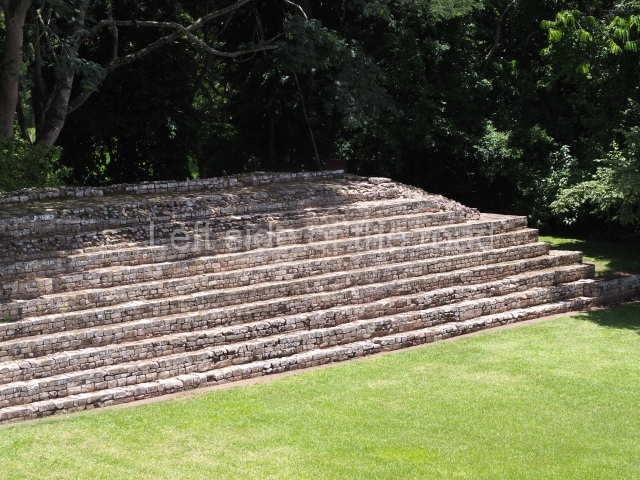 This extraordinary space with a stairway around most of its perimeter comprises the Sun or Stelae Court to the north, the Hieroglyphic Stairway Plaza to the south, the East Court and the Ball Court. The Sun Court takes its name from the solar phenomena – equinoxes, solstices and the passage of the sun over the zenith – which are marked by several of the seven stelae, 11 altars and Structure 4 situated there. The latter is a small square-plan, radial pyramid with free-standing stairways on every side, formed by four vertical tiers. Two groups of sculptures can be found in the Sun Court, one in the middle comprising stelae I, A, 4, B, C, E, D, F and H, with their corresponding altars and the independent Altar G; Stela 3 was erected on the south side of Structure 4. The tour of this area continues to a platform on the north-east side of the Sun Court, with Structure 3 at the east end and series of structures on the north side. The most outstanding of these are the steam baths with their unmistakeable engineering. Meanwhile, the East Court or Middle Plaza is virtually devoid of elements, which means that it is difficult to infer its function. At the north-east end stands the unusual Stela J, whose altar marks the boundary of the central court.