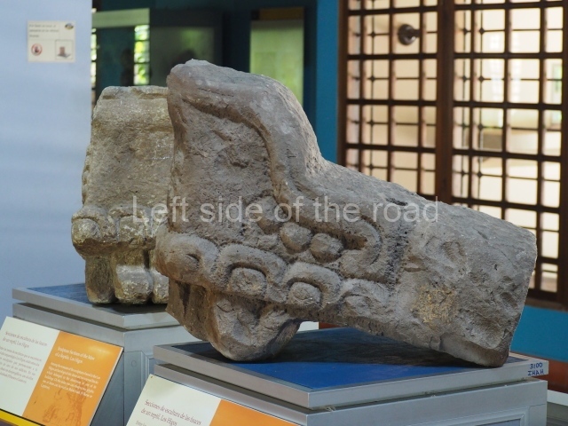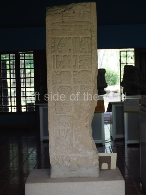 This is situated in one of the typical local houses. The collection contains fascinating ceramics, including the 12 lids found in the Chorcha Tomb beneath the Hieroglyphic Staircase. The lids bear sculptures of the first 12 dynastic rulers. Also on display are stelae 11 and 35, the only surviving fragment of Stela 24, various ball court markers, altars T and U that were found in Copan Ruinas itself, and an unusual sculpture of the Maize God. There are also offerings from the Chorcha and Chamana tombs, as well as numerous explanatory panels that provide information not only about the site but Maya culture in general.