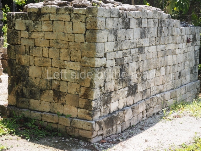 This is situated north of the Pixaan Group. Oriented east-west, the court is approximately 60 m long and just over 10 m wide. Like the majority of the constructions on the site, the walls are clad with regular-shaped limestone veneer stones. No stone ring or any other fragments have been found.