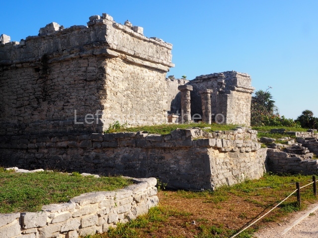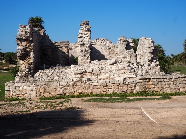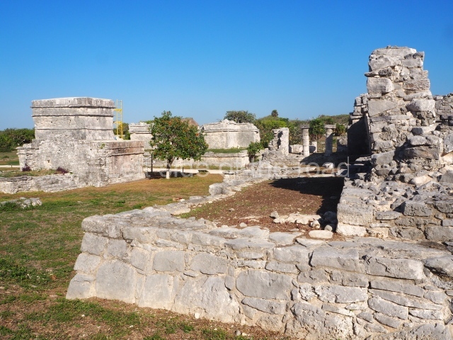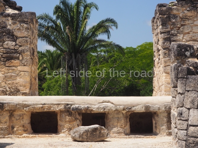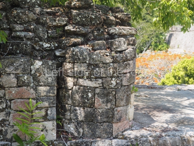 This rectangular space west of the Ball Court is surrounded by four elongated buildings. The west construction is fronted by pairs of columns, providing access to the interior, and the constructions on the north and south sides also had several entrances formed by pilasters. At the centre of the plaza lies a quadrangular platform.