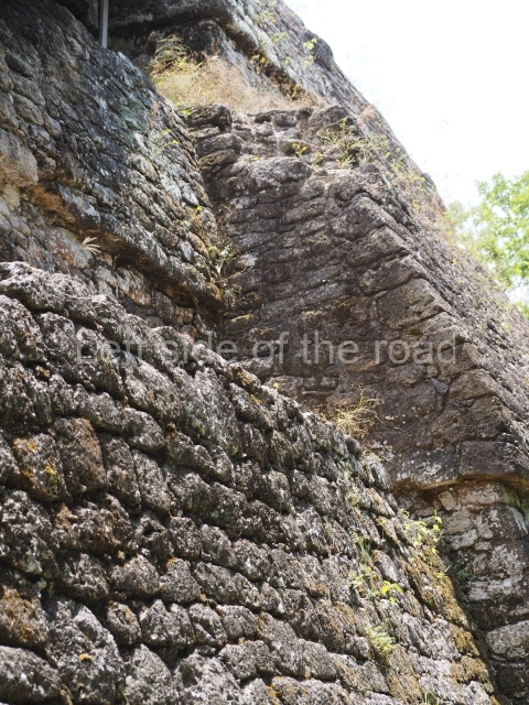 This is reached by following the path situated south-west of the Pixaan Group. It was thus called because of the various flights of steps leading to the group of buildings at the top of the hill. In this upper section there is a rectangular courtyard surrounded by several masonry buildings with rooms of a residential nature. The deliberate east-west orientation of the courtyard is plain to see, as well as the arrangement of the works on several levels in relation to the latter. Situated south-east of the main group are various other constructions also near the top of the hill.