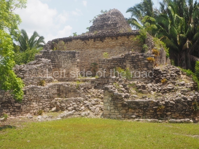 From Chetumal. From the combi station behind the Museum of Mayan Culture take the Nicolas Bravos bound combi and get off at Francisco Villa – about an hour. M$60. The turn off to the site is to the left of the direction of travel. Try and hitch or encourage someone to give you a lift on the back of their motorbike. Pay between M$50 and M$100.