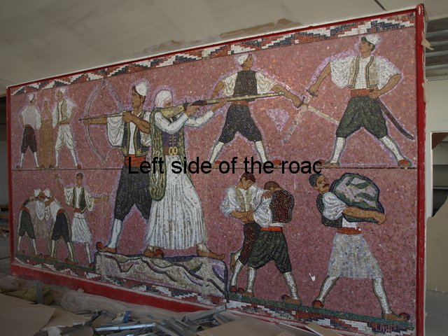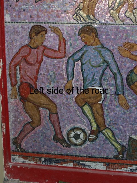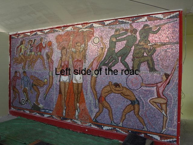 Although they are being neglected, and sometimes need dedication and determination to view them, there are still a number of artistic works from the Socialist period on many of what would have been public buildings. The most impressive (and becoming one of the most neglected) is the grand mosaic on the facade of the National Historical Museum in Tirana. Another example, which can easily be missed, is the bas-relief on both the north and south sides of the Palace of Sport in the town of Vlora. Even more easily missed are the two interior mosaics on either side of what would have been, in the past, the main entrance to this sports centre.