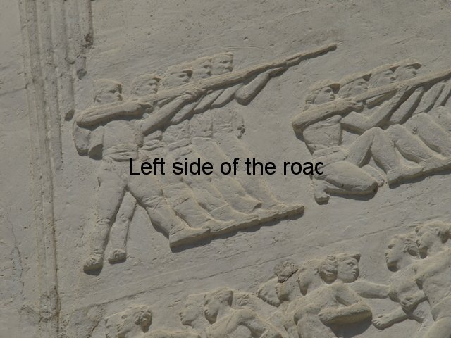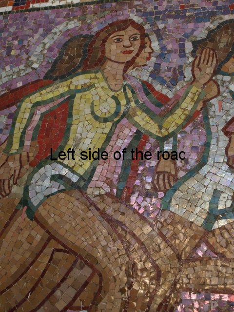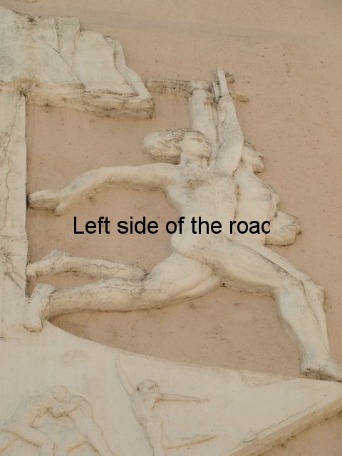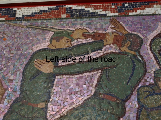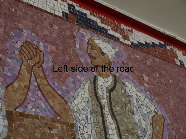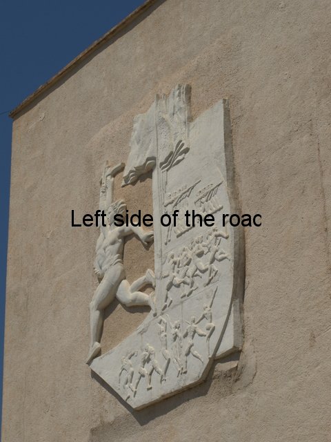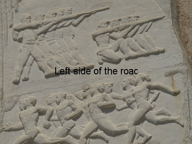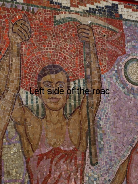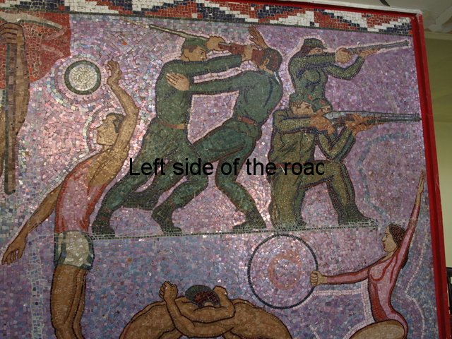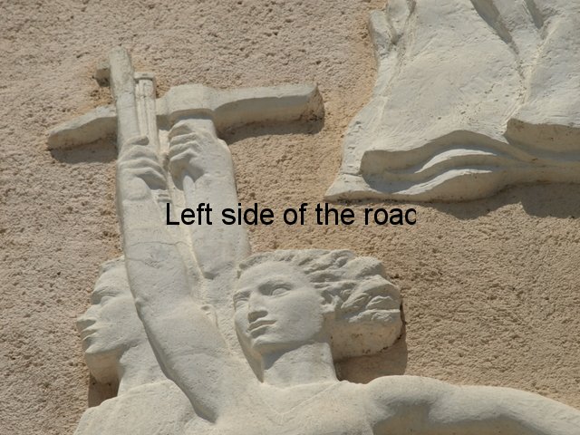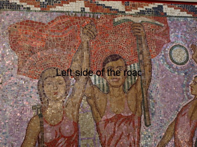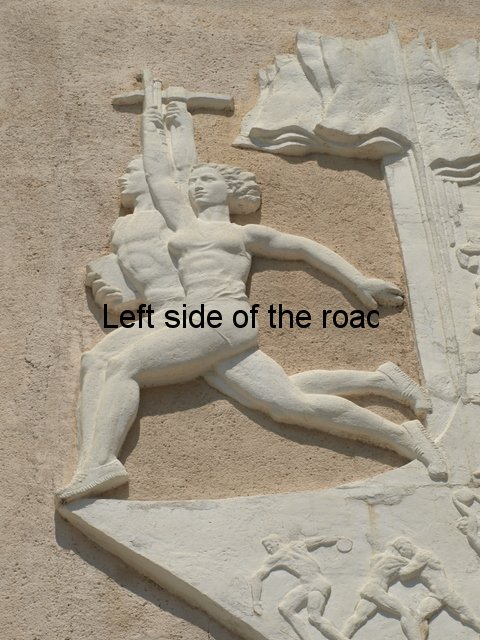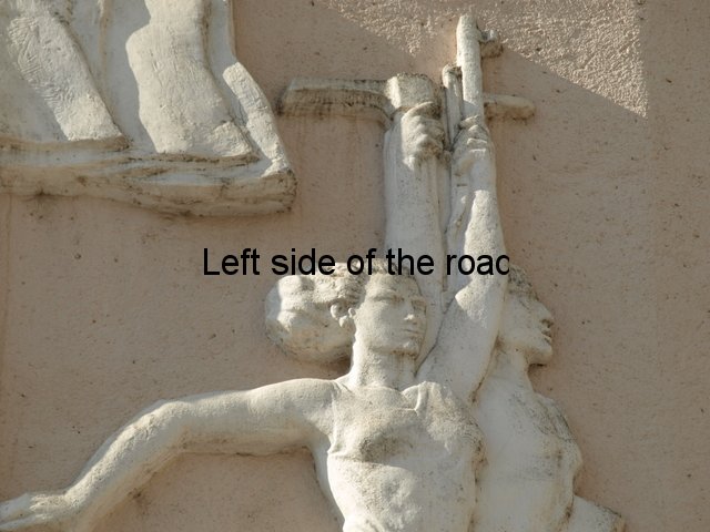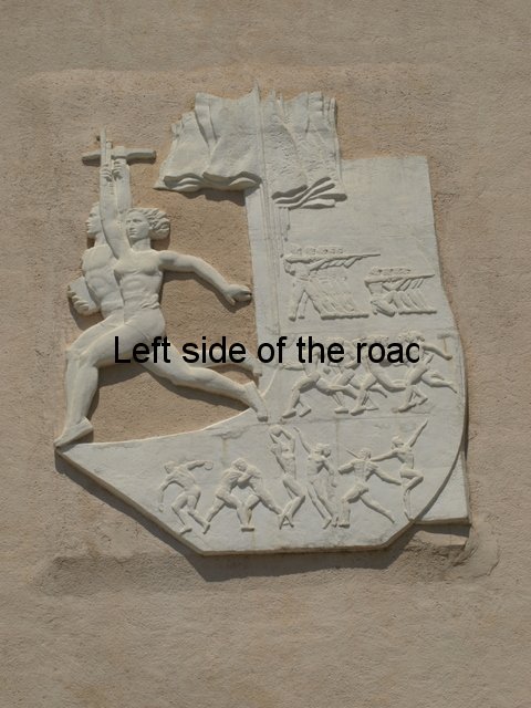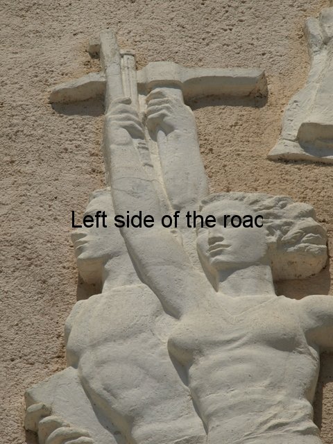 Of the two the bas-relief in the best condition is the on the southern face of the building, on the right as you look at the main entrance. This is probably solely down to the fact that it looks down upon one of the expensive bars attached to one of the hotels that are mushrooming throughout the country. The bas-relief is high up and as with all such of the Socialist period it tells a story.