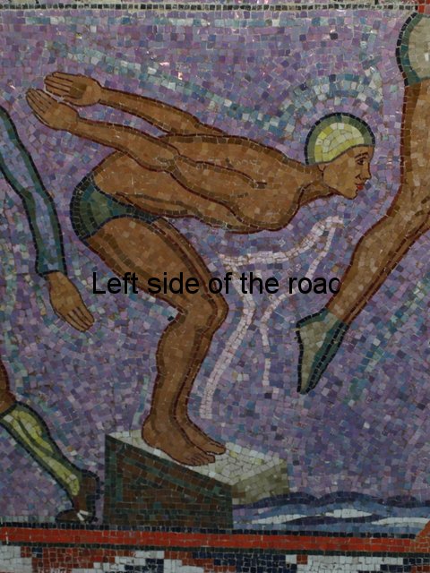 The panel representing modern sport is of exactly the same size of that depicting traditional sport and can be found on the right hand side of the main entrance hall. (I didn’t measure the panels but a rough estimate would be that they are about 2.5 metres high by 8 metres long.)