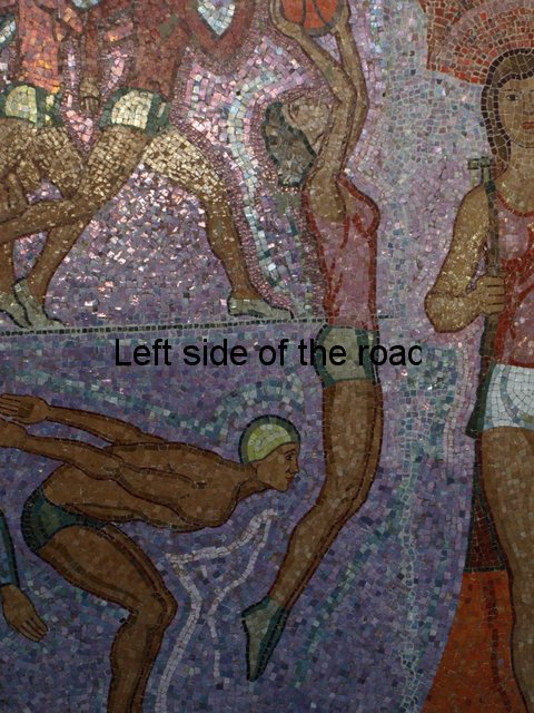 Although the location was a building site (in suspension) when I visited, in the summer of 2016, the mosaic looks in a reasonably good condition, a little dusty, perhaps, but not showing any real signs of damage – either intentional or accidental. I wasn’t able to ascertain what the plans were in completing the renovation of this area but it is hoped that when it is eventually finished and people pass on the way to the basketball games they will be able to appreciate a little of their cultural past (although a local person I spoke to, who had visited the Sports Palace during the period of Socialism, couldn’t remember these mosaics).