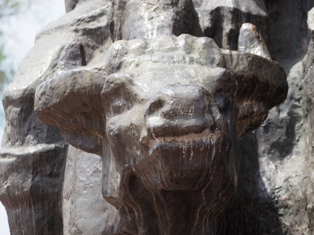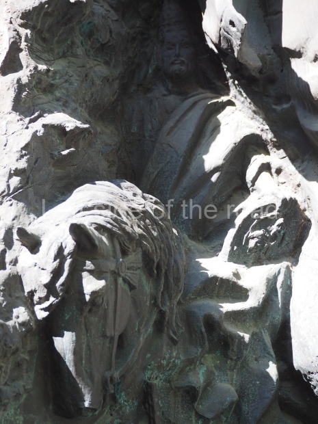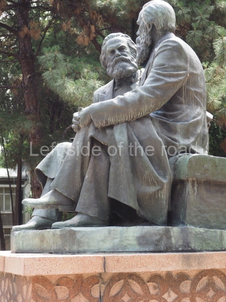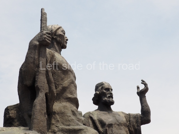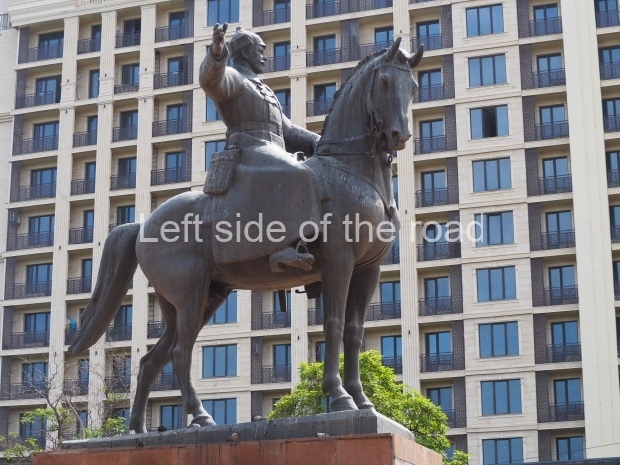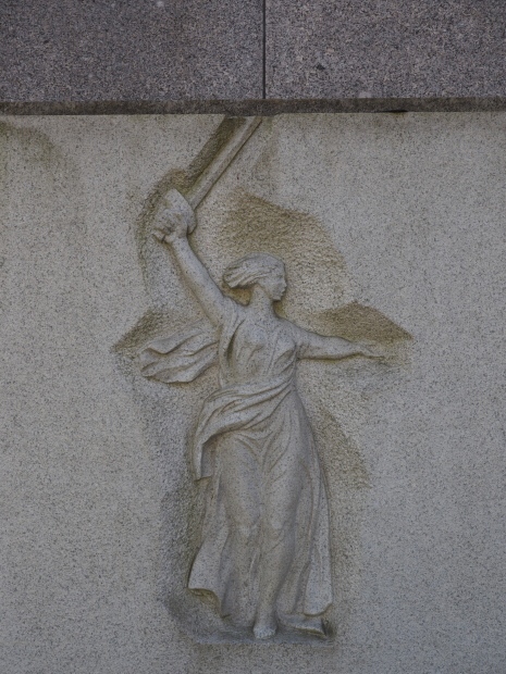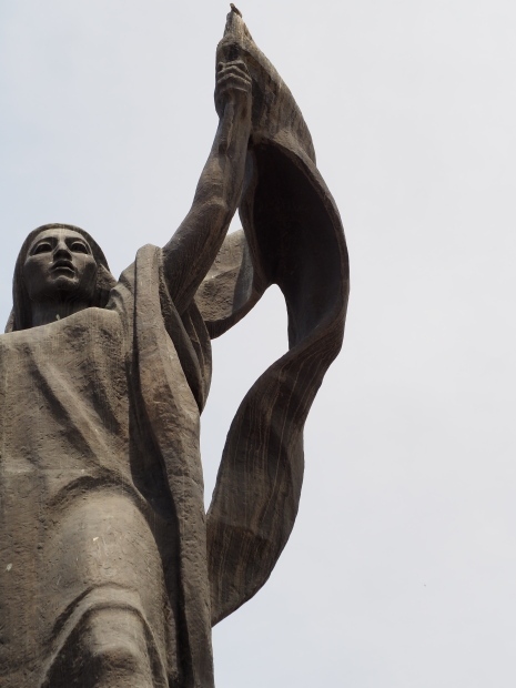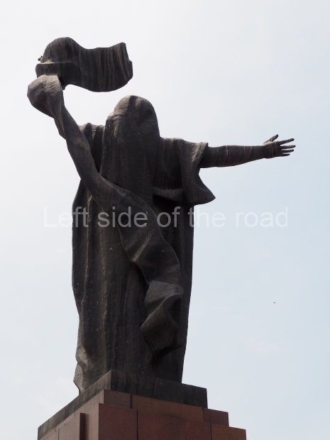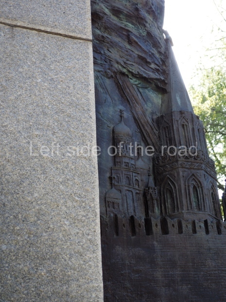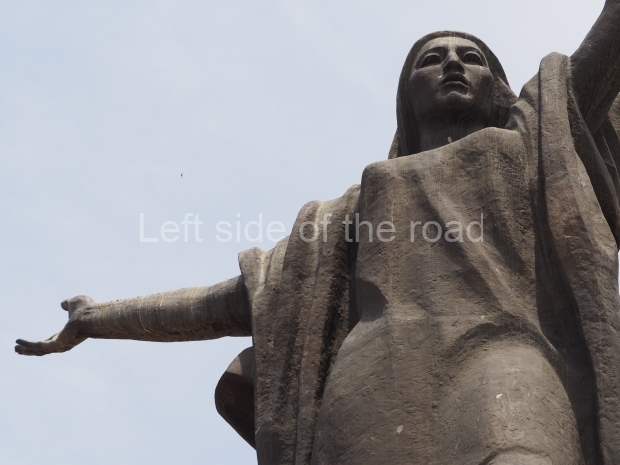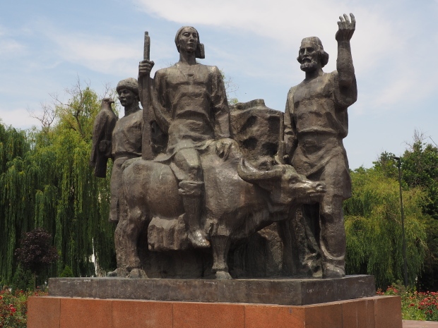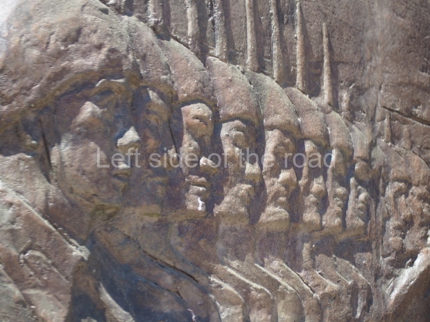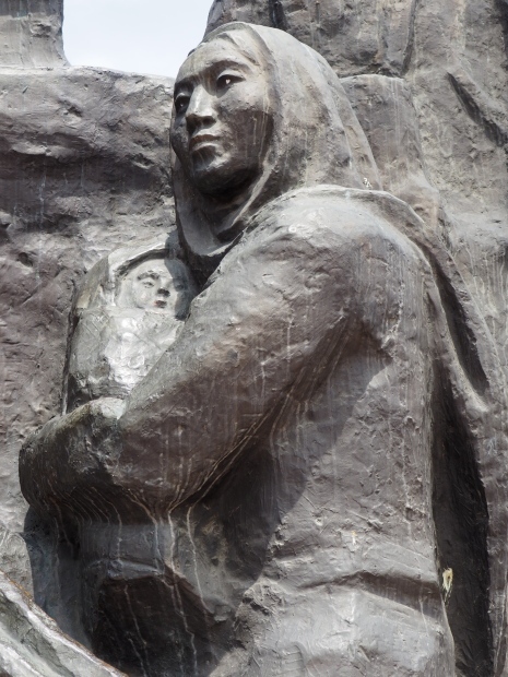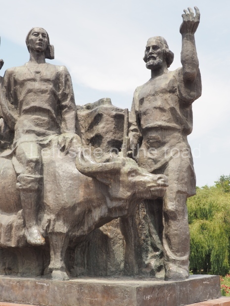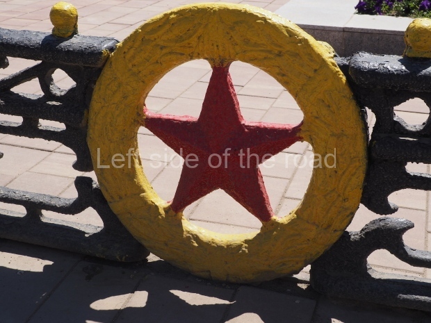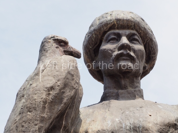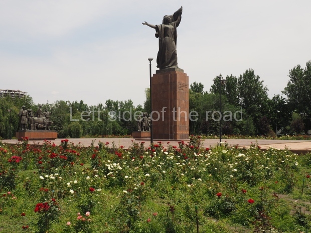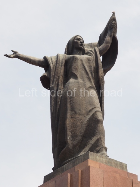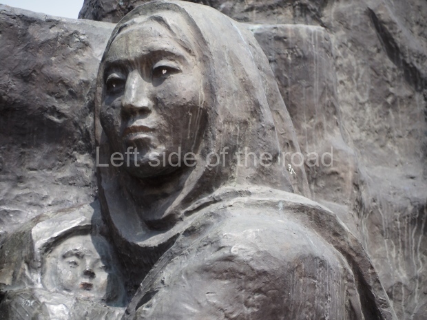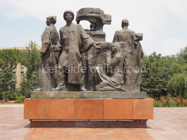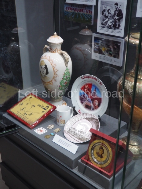 The backdrop to this complex follows very much a Soviet, Socialist Realist pattern. On the left hand side as you look at the statue, the panel represents Aktobe (and also Kazakhstan’s) past. It shows the fights for independence (against whom is not specified) including a female warrior – which sets up the scene for Aliya to be represented in the right hand panel. On this left hand side we also have the introduction of Kazakh culture in the form of a group of musicians playing traditional instruments.