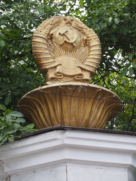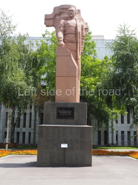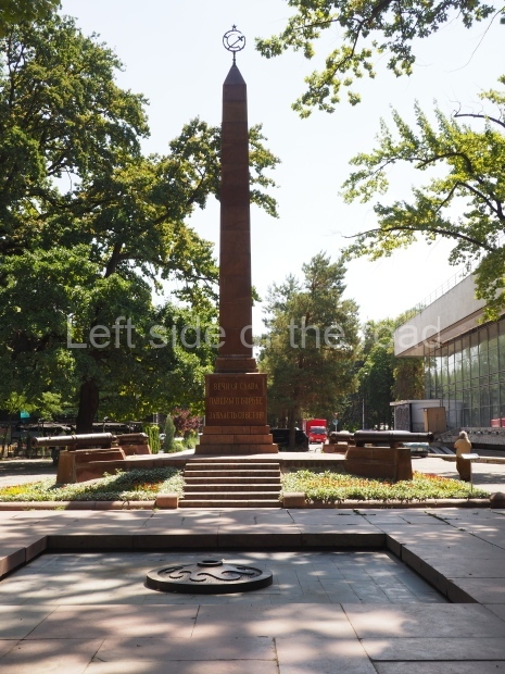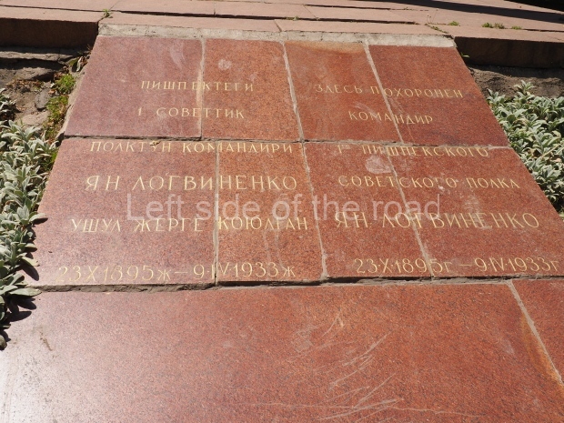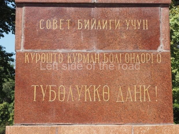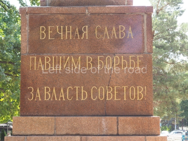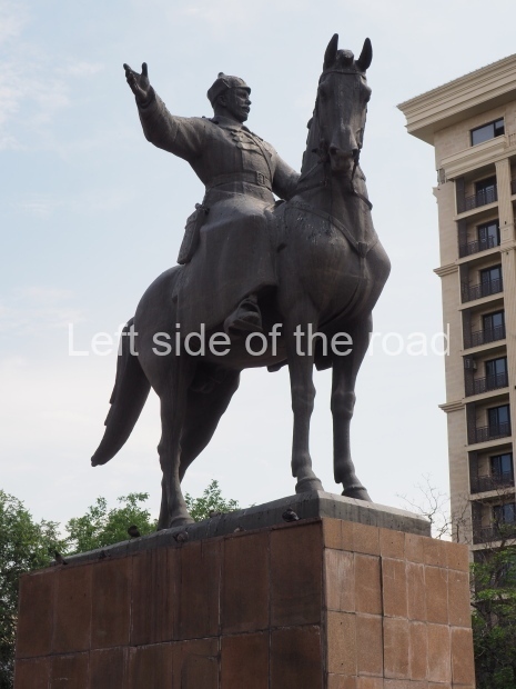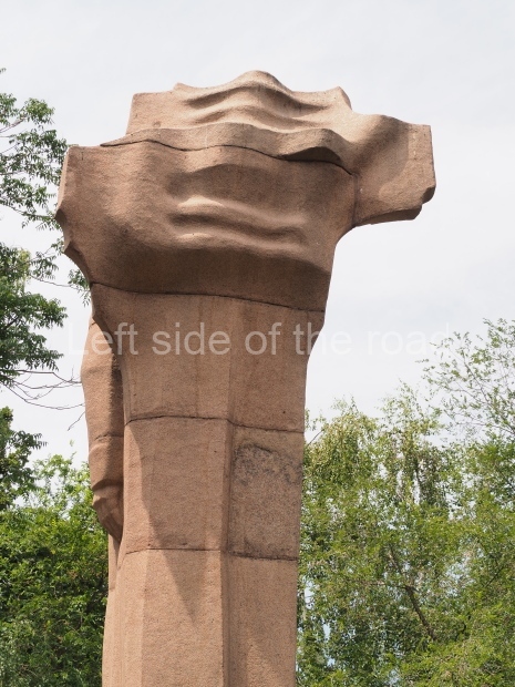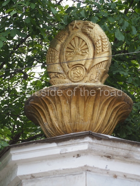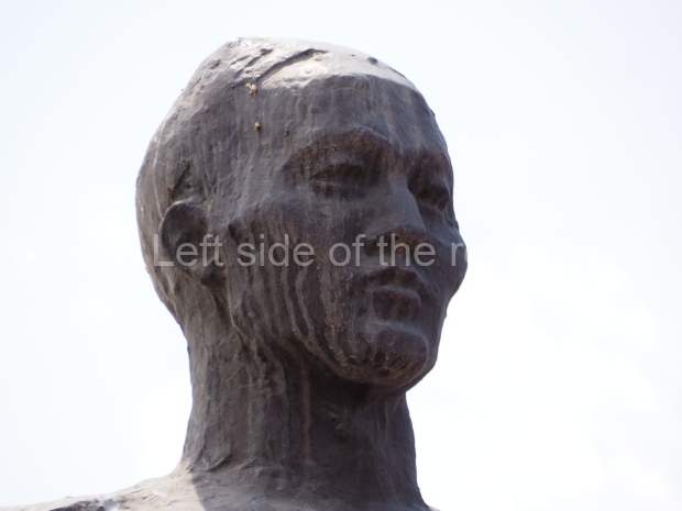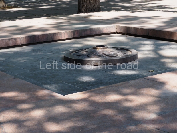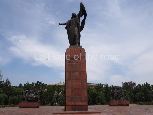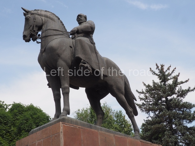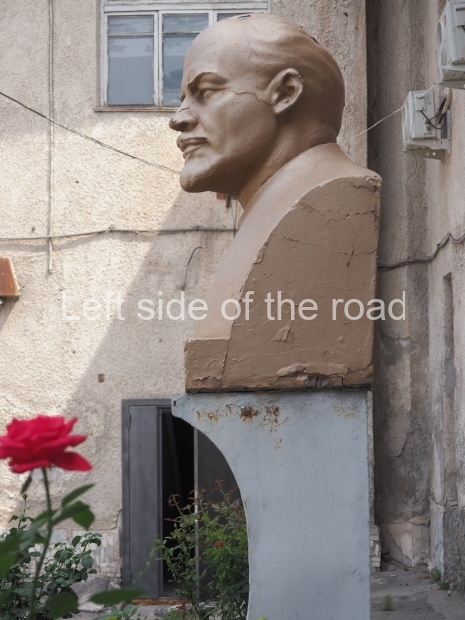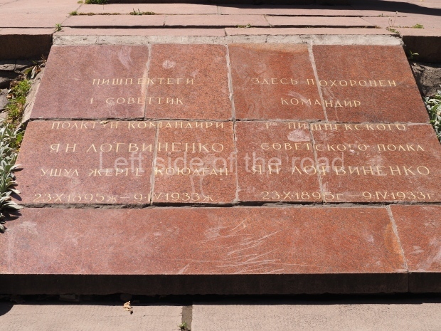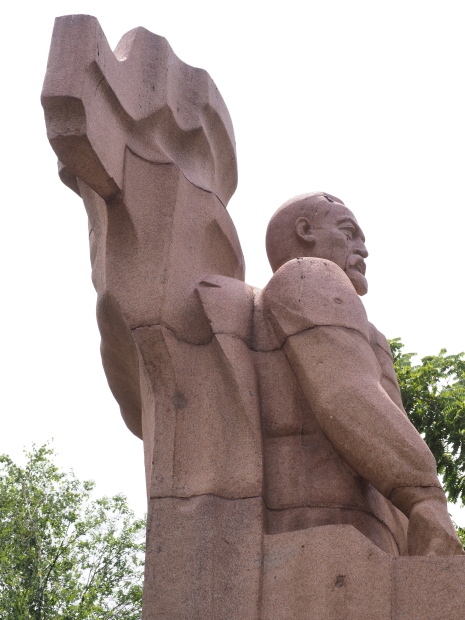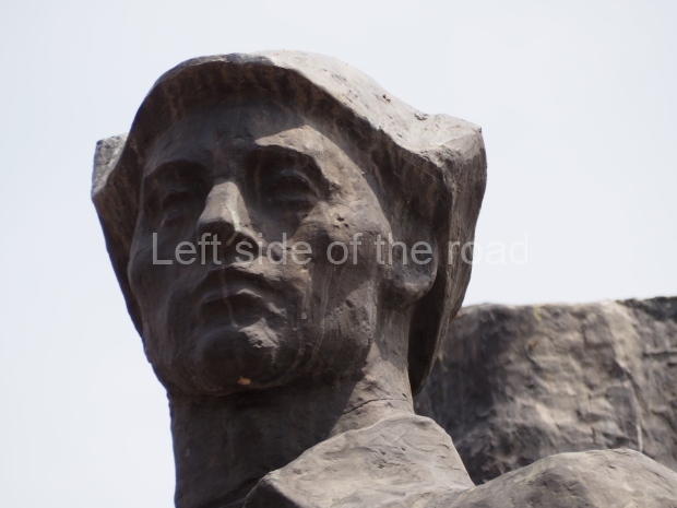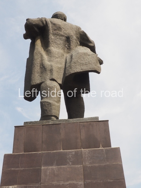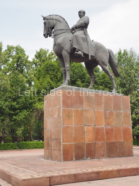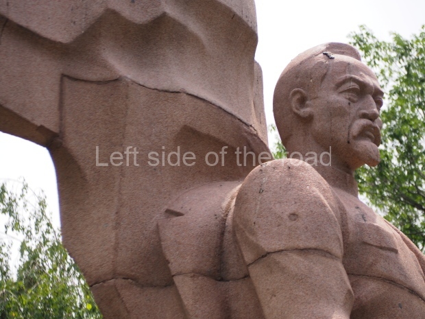 This is a much more staid and formal representation of the young woman. It is a bust, about 1.3 metres mounted on a high stone stele – giving a combined height of 3 metres. It stands at the entrance to a small green and garden space that leads off Shimize Street – opposite No 39 – in the older part of Aktobe.