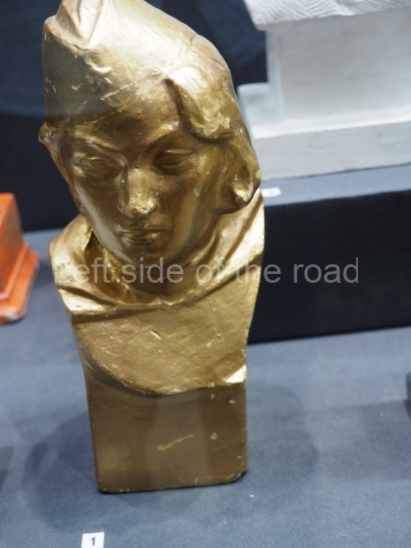 We have here a uncomplicated head and shoulders bust of a young woman in a basic and unadorned military shirt and with a military cap on her head. The only decoration is the Red Star on her cap and the medal of the Hero of the Soviet Union on her right chest.