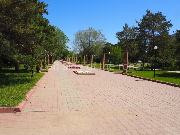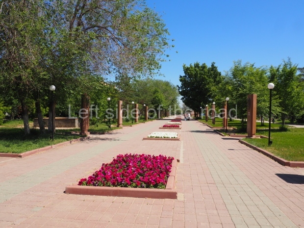 The avenue of busts leads to what is now called Aliya Moldagulova Memorial Park. (I’m not sure if in this location previously stood a statue of VI Lenin. There are no statues of Lenin on public display in 2025.)