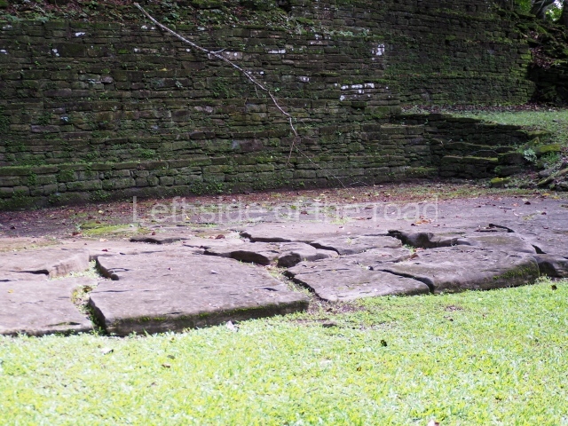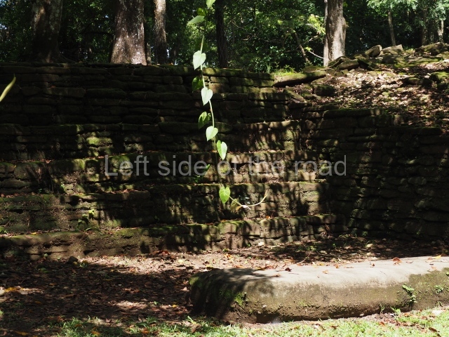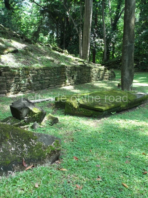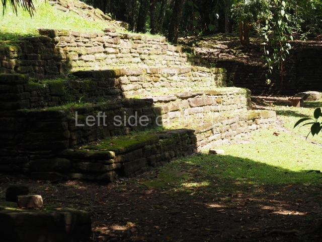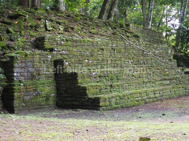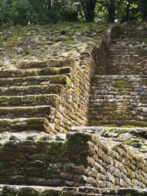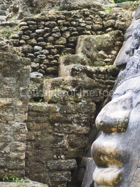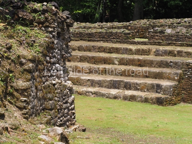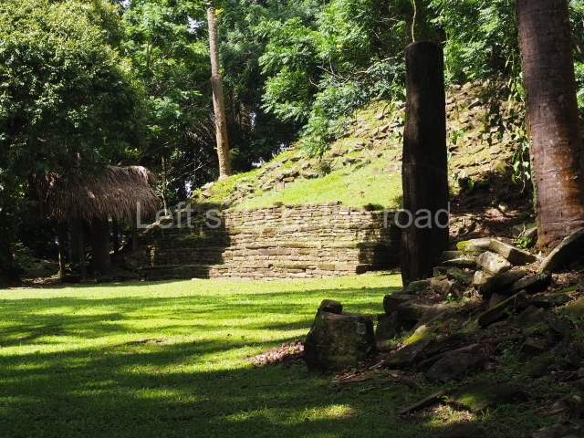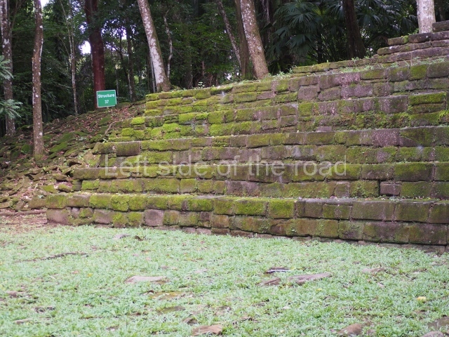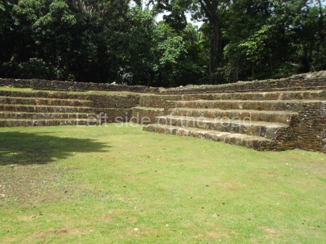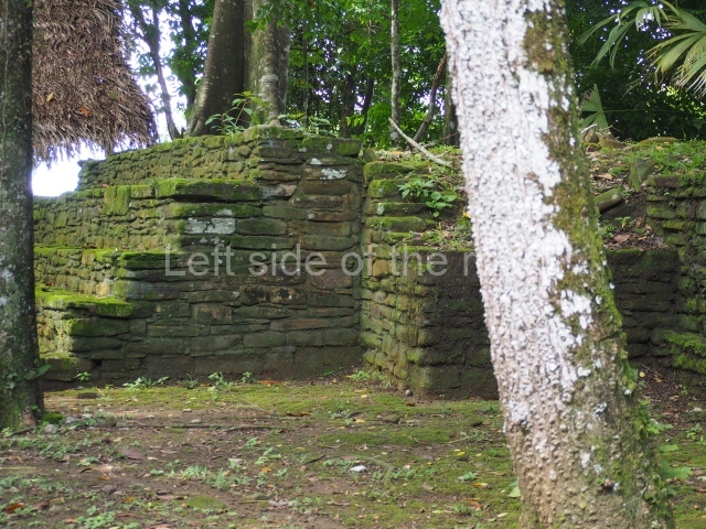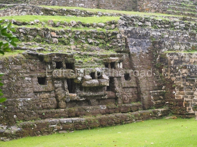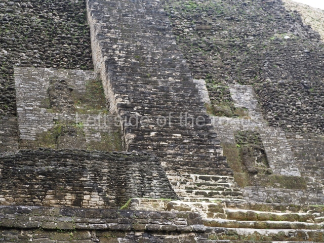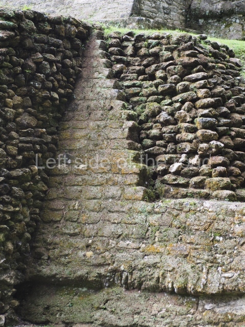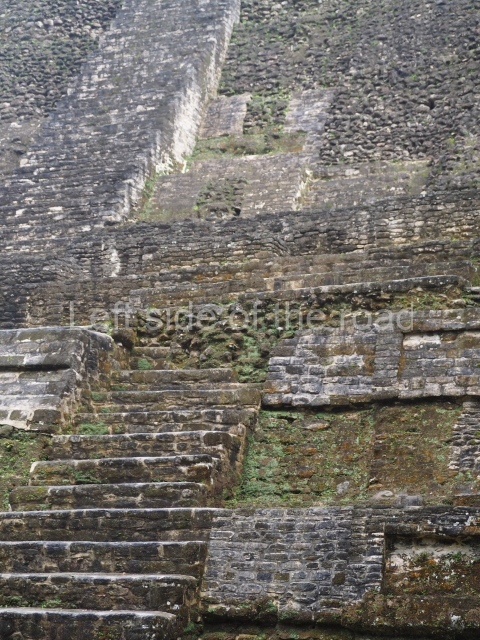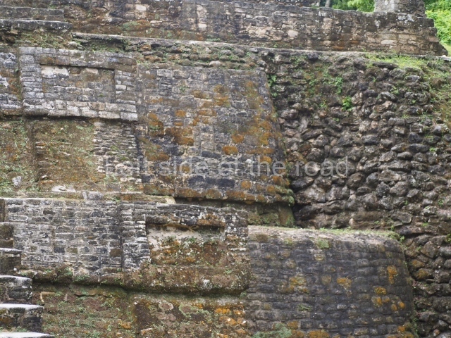 This is situated in the northern section of the site. The masks on the facade are unique in that their construction technique differs considerably from that used for other Maya masks. Instead of being modelled in stucco on a stone armature, they are made of blocks of limestone and then with a thin layer of grey stucco. Each anthropomorphic face has a headdress representing a crocodile. The presence of this symbol possibly validates the site name registered by the Spanish: Lamanay, ‘place of the crocodile’. Its construction commenced in 200 BC and it was remodelled on several occasions until AD 1300. Inside the temple is a sub-structure from the Preclassic with masks like those found in Structure 5C-2nd at Cerros. Two tombs, one of a male and the other of a female, were found inside the building. The male’s grave goods comprised objects of jade and shell, various textiles, matting and artefacts made of perishable material.