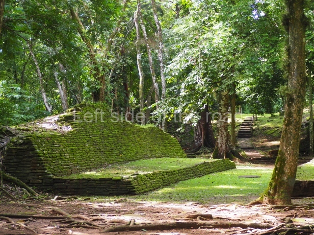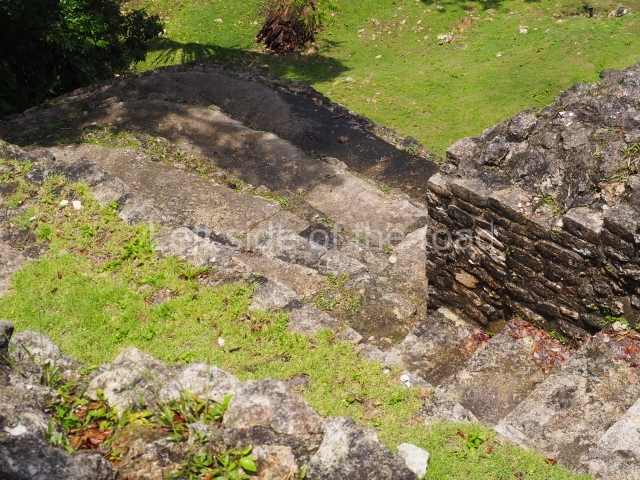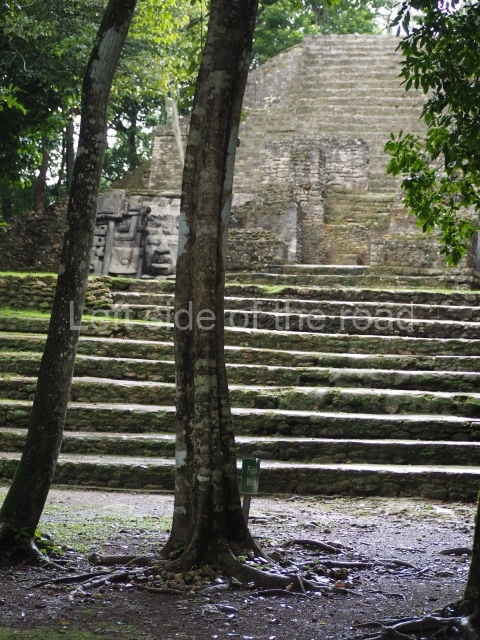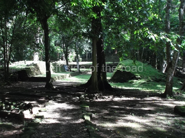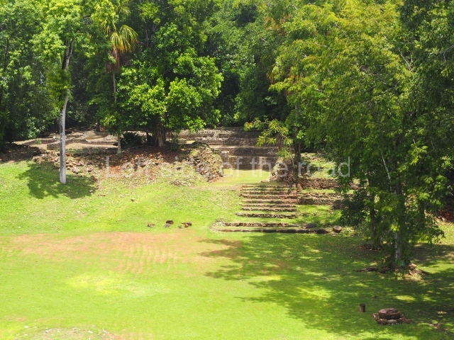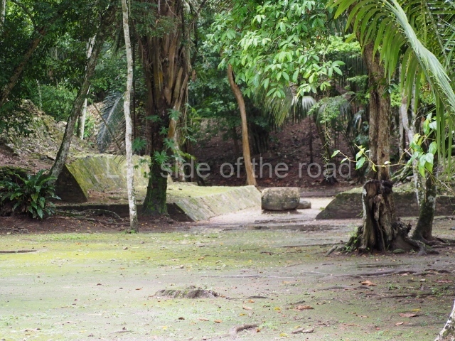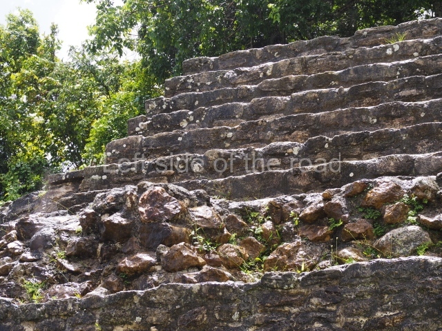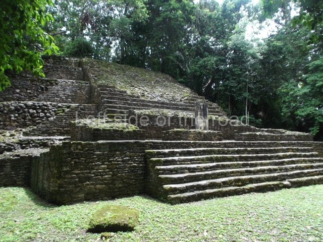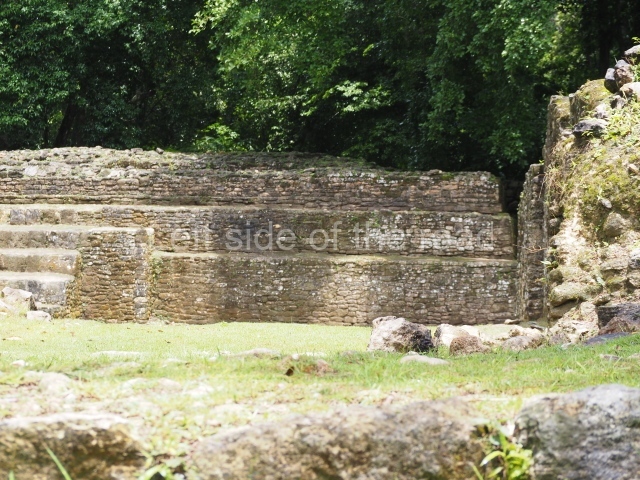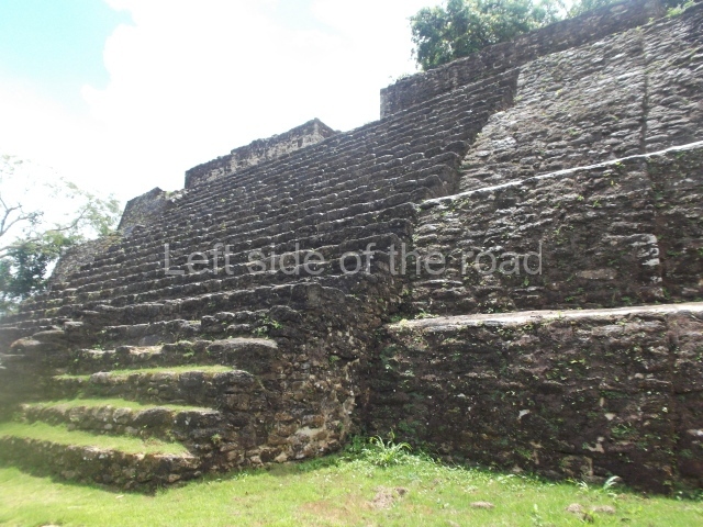 From Orange Walk. Not easy, especially if you visit during the rainy season and you don;t have access to a 4×4 vehicle. Almost certainly the most convenient, and most attractive, way is to travel by boat from just south of Orange Walk which takes you on a tortuous route through the many channels of the New River to the site, taking in along the way the local wildlife, especially the birds but also crocodiles and turtles. These can be organised locally and cost in the region of B$110 for an excursion which includes transport from your accommodation, the boat trip, lunch and entrance to the site – all accompanied by a local guide.