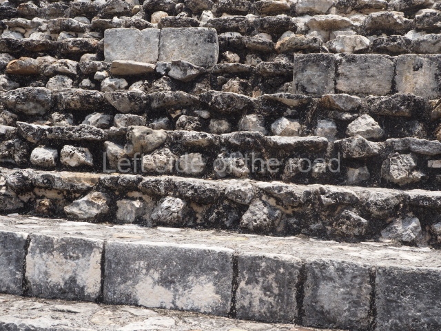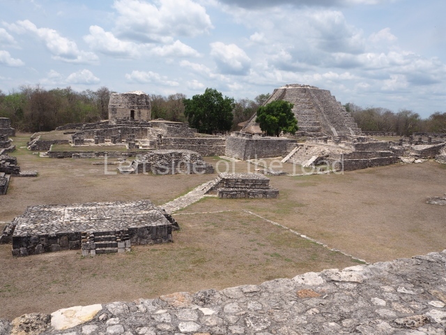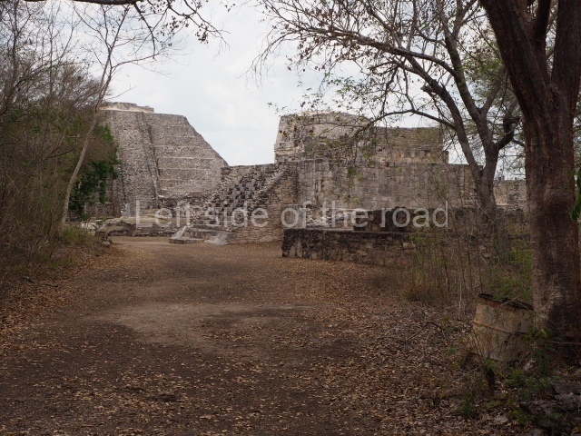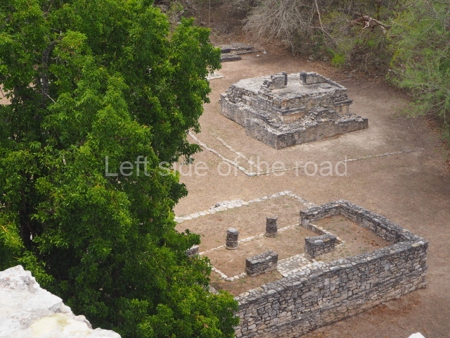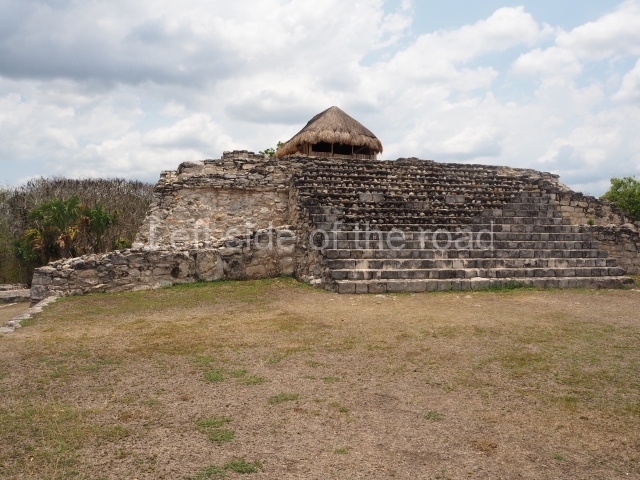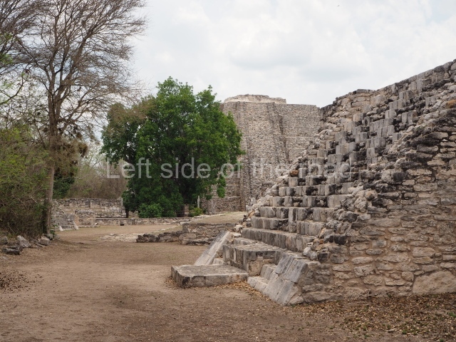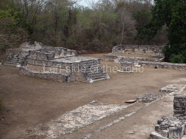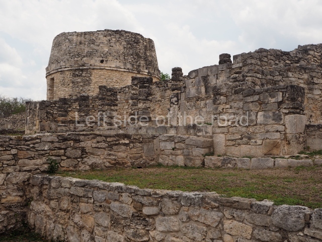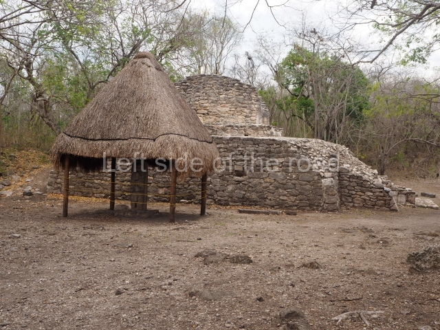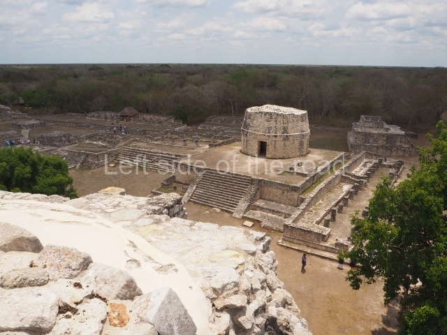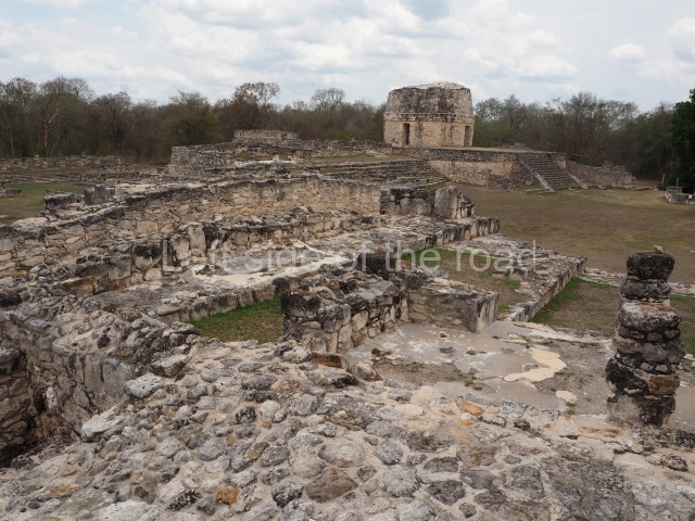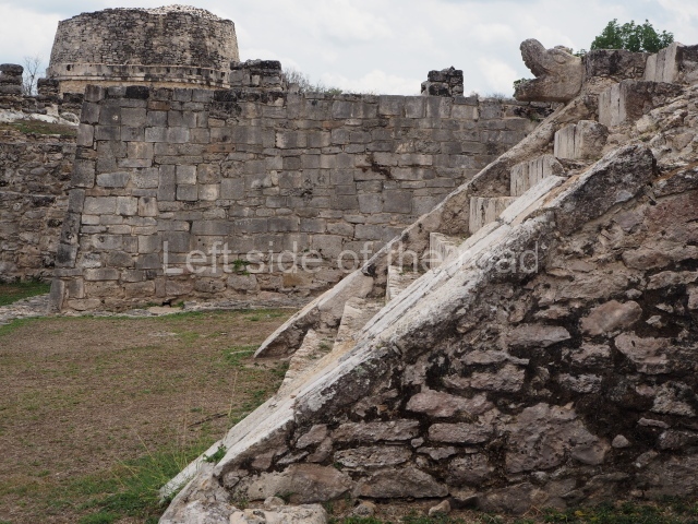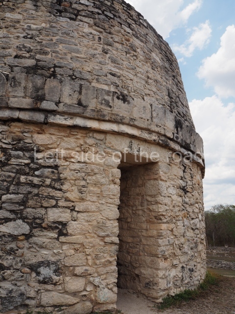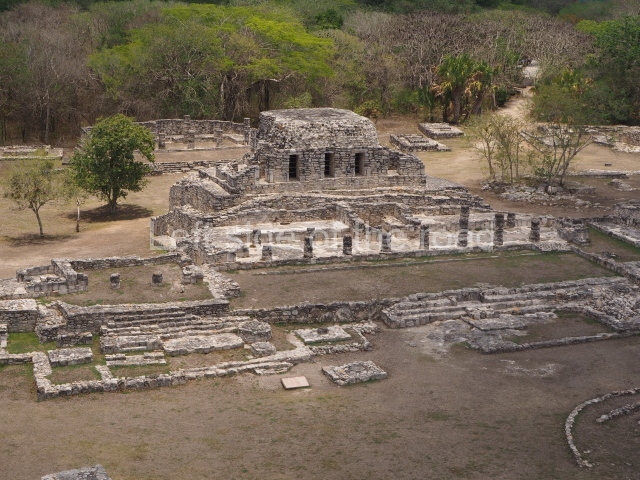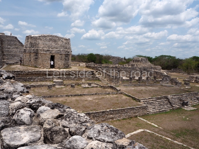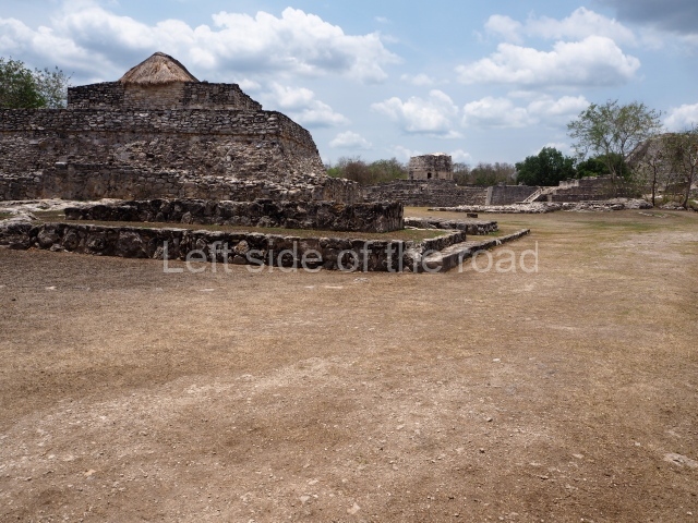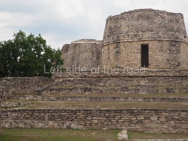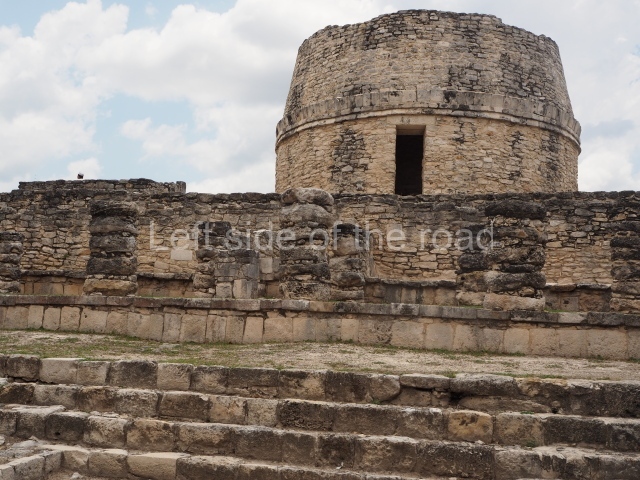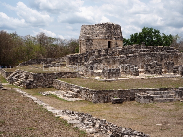 This is situated on the east side of the Central Plaza. It is a rectangular platform with moulding around the top and a balustraded stairway. It is 20 m long, 18 m wide and 3.5 m high. At the top is a circular, vaulted temple 10.20 m in diameter and 7.50 m in height, with four entrances and thick walls 1.15 m wide. The central part of the temple consists of a cylindrical volume 4.50 m in diameter with four niches in the lower section, two of which show traces of mural paint. This volume and the walls form the interior space, measuring 2.75 m in width and 6 m in height. There are also two small constructions – a small altar on a dais and a shrine – on the north side of the stairway.