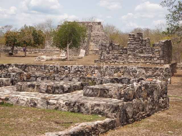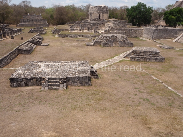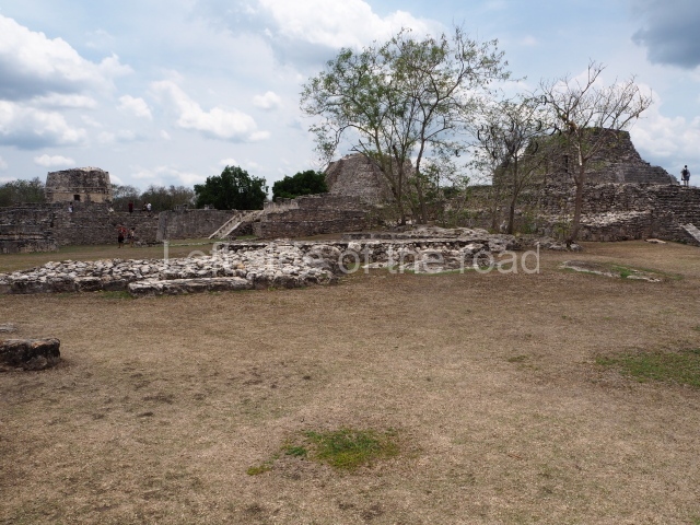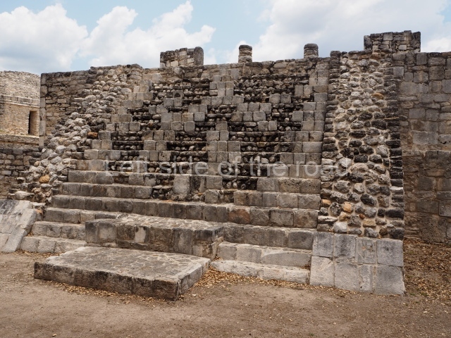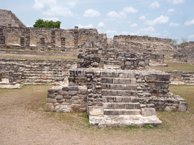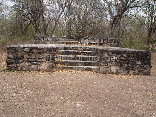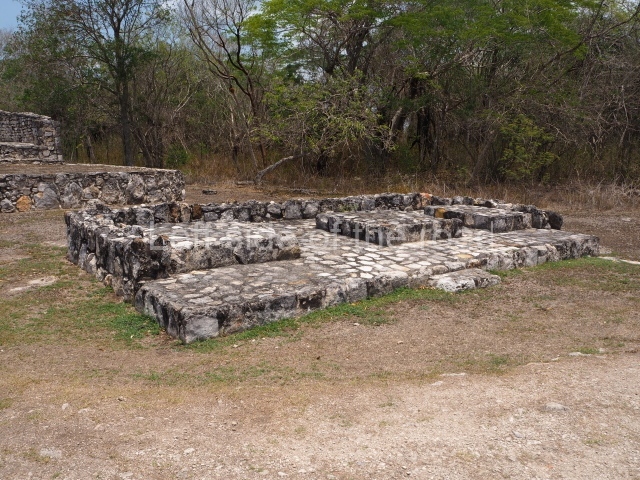 This is situated in the West Plaza of Mayapan. It takes the form of a square platform with two mouldings; there is a balustraded stairway and a shrine at the top.