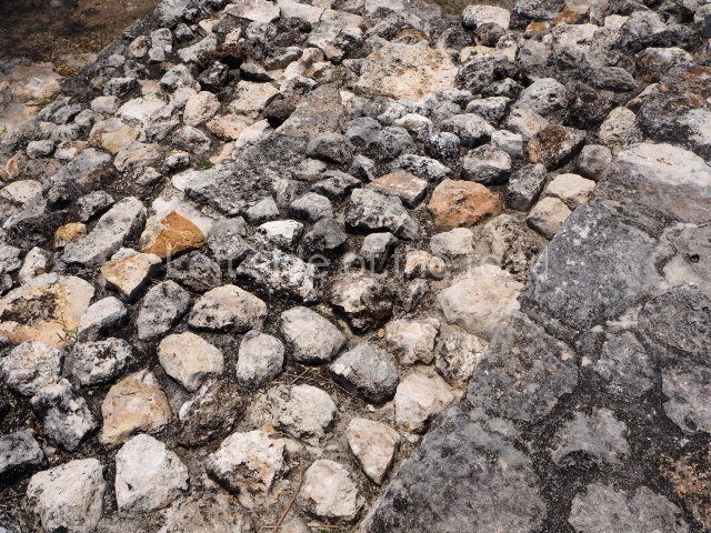 The city of Mayapan is surrounded by an elliptical dry wall which has a circumference of over 9 km and encompasses an area of 4.2 sq km; situated inside it are around 4,000 structures and it is estimated to have had a population of 12,000. The core area comprises the civic, administrative and religious buildings, as well as the residences of the ruling class; these are spacious hypostyle rooms, temples and oratories, constructed on platforms, with wide entrances divided by columns, an altar or shrine inside, abutted to the rear wall, and benches along the sides. Circular buildings known as ‘observatories’ are also characteristic features at Mayapan. Situated inside the walls is the residential area where the population lived, principally in the south-east section. This was the place where the ‘houses for the lords’ were built, ‘between whom they divided up the land, giving villages to each according to the antiquity of their lineage and nature of their person’. This section contains most of the housing and the dry walls that delimit the plots. There are also residential constructions beyond the perimeter wall where the common people lived.