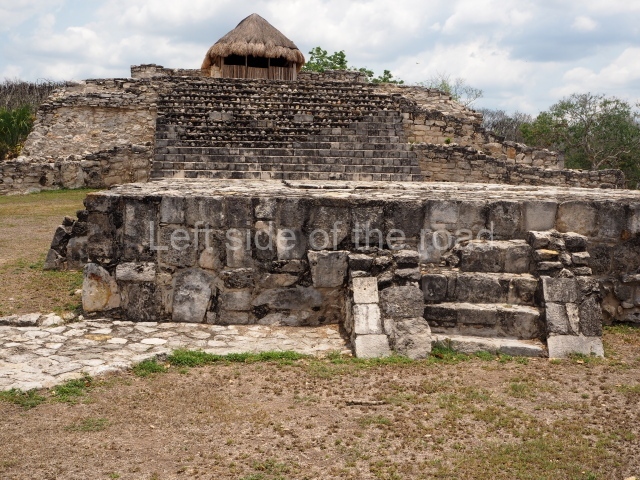 The second-highest pyramid at Mayapan, this is situated on the west side of the North Plaza and is surrounded by a wall on three sides. The structure shows two construction phases comprising four sloping tiers with rounded corners, a temple at the top and a stairway with balustrades on the east side. The temple at the top has a triple entrance separated by two columns and there is a shrine inside. A tomb 7 m deep containing burials was found at the top of the platform. The building is 20 m long, 17 m wide and 8 m high.