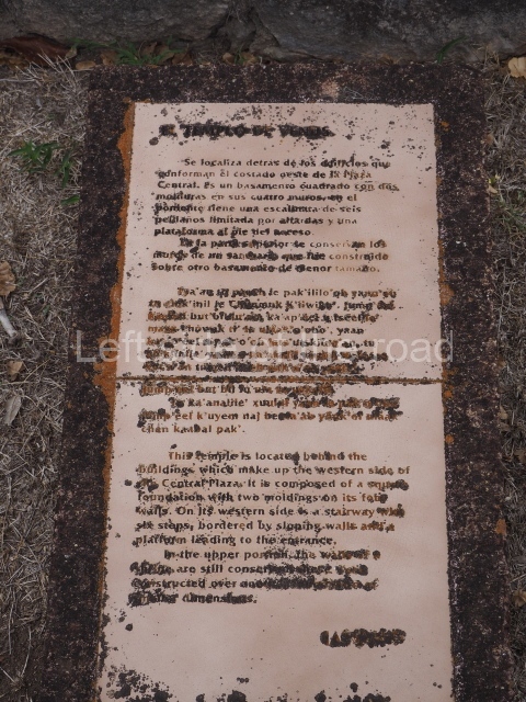 Situated on the west side of the North-East Plaza, this is a two-tier platform with a temple at the top with three entrances and a shrine and altar inside. It is accessed via a balustraded stairway which culminates in finial blocks and serpent heads.