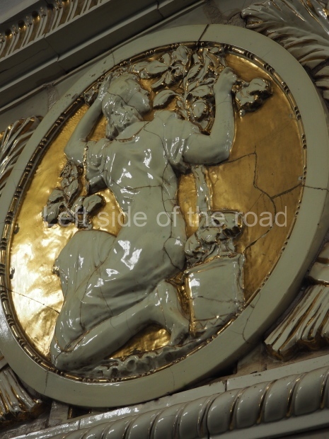 The walls of the assembly hall, which can seat 500 people, are clad in artificial marble. The furniture and woodwork are made of Karelian birch and polished walnut, the armchairs and drapes are upholstered in red velvet.