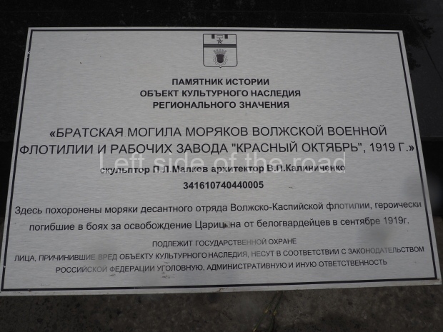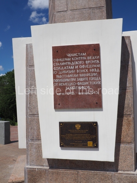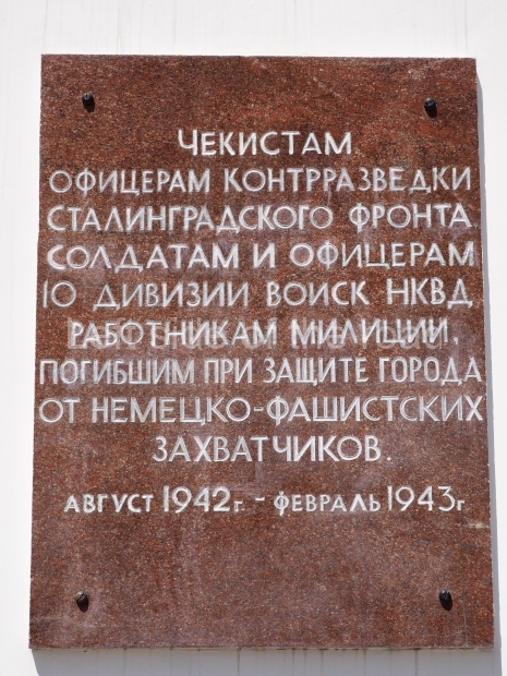 Чекистам, сотрудникам контрразведки Сталинградского фронта и военной полиции, погибшим при защите города от немецко-фашистских захватчиков с августа 1942 – февраль 1943 года